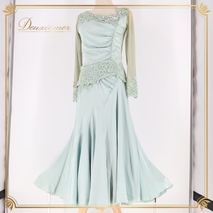 #社交ダンス #ダンス衣装 #ツーピース #セットアップ #Chacott #チャコット #優しい色味 #上品 #レース調 #ファッション #ダンスファッション #女性用トルソー #体型カバー #伸縮性有り #背面ファスナー #おしゃれ #ダンススタイル #競技ダンス #パーティー衣装 #ENUTSU
