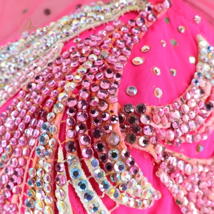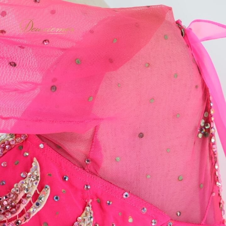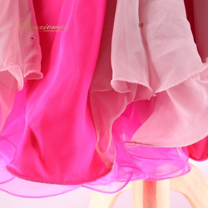 社交ダンス 衣装 スタンダードドレス ワンピース ドレス スタンダード フロート レース デモ 競技 フリル 発表会 パーティ ミニ丈 ピンク系 フリル ドレス ピンク スカート 輝き 女性用 競技用 社交 ダンス用 発表会用 可愛い 華やか 2枚重ね