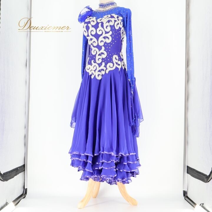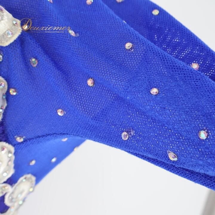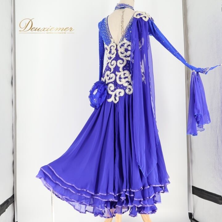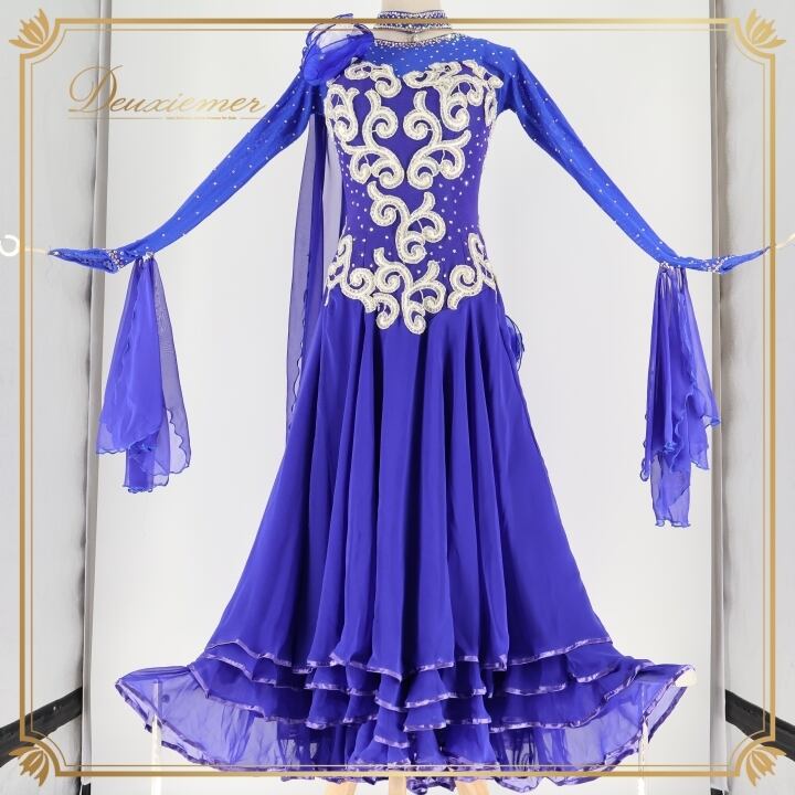 社交ダンス 衣装 スタンダード ワンピース ドレス スタンダード 青 フロート レース ダンス パーティ 発表会 落ち感 綺麗 上品 デモ 競技 ブルー系 ステージ用 美しい おしゃれ きれい 高級感 レディース フォーマル 華やか