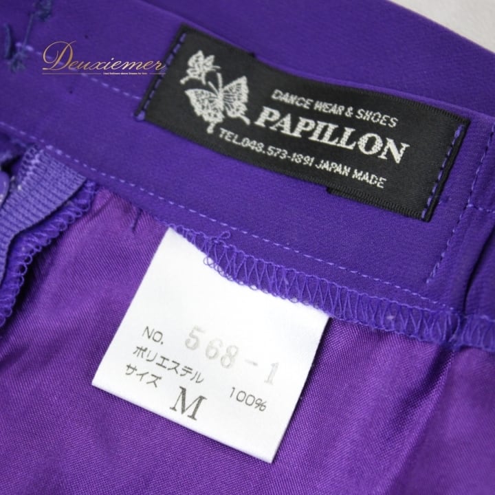 社交ダンス 衣装 スタンダード スカート レッスンウェア 練習着 レディース PAPILLON パピヨン パープル系 紫 無地 派手 シンプル 上品 総丈 約76cm ウエスト 約30cm 伸縮性 ポリエステル 日本製 大人の色香 バイオレット