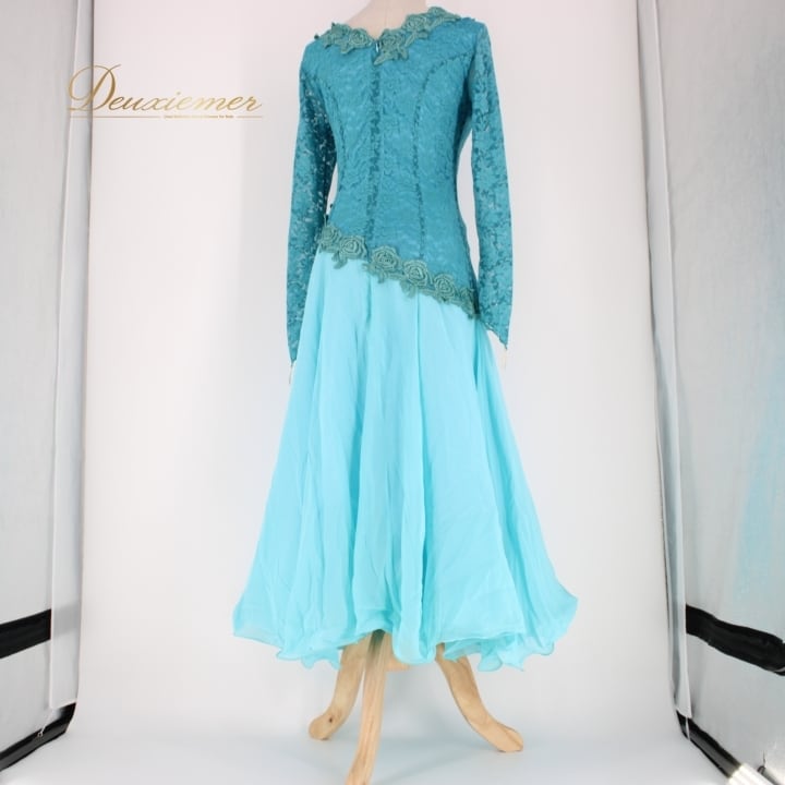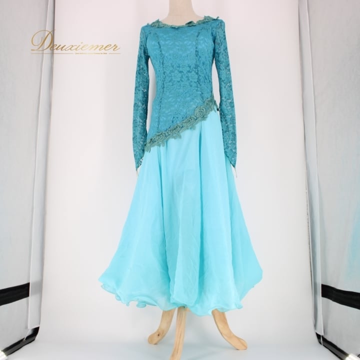 #社交ダンス #ダンス衣装 #ドレス #ライトブルー #花柄レース #プリマブティック #サイズフリー #ファスナー仕様 #伸縮性 #女性用 #おしゃれ #パーティードレス #ダンスファッション #ウォーキングドレス #ビジュー #豪華な装飾 #春夏コレクション #高品質 #コーディネート #ENUTSU