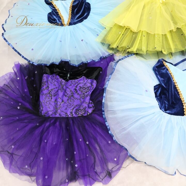 バレエ 衣装 まとめ売り 7点セット チュチュ ワンピース 紫 水色 コンクール 舞台 発表会 劇 ジュニア 子供 チュール ブルー系 パープル系 イエロー系 発表会用衣装 チュチュ セット売り 子供服 ドレス おしゃれ かわいい 楽しい イベント用 カラフル まとめ買い