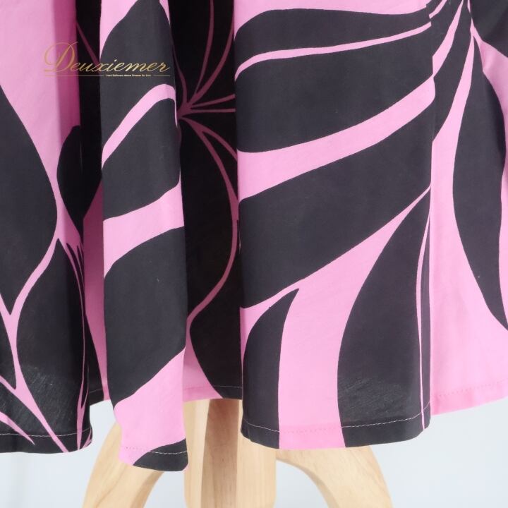 フラダンス 衣装 ワンピース ドレス ブラック系 ピンク系 ツーカラー チューブトップ プルメリア柄 モンステラ柄 かわいい 華やか 鮮やか 明るい 黒 ハワイアン アロハ ハワイアンプリント フラ ダンス レッスン 練習 おしゃれ ドレスアップ エレガント