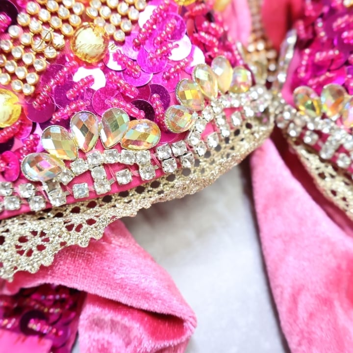 ▽スパンコールやビーズの豪華な装飾