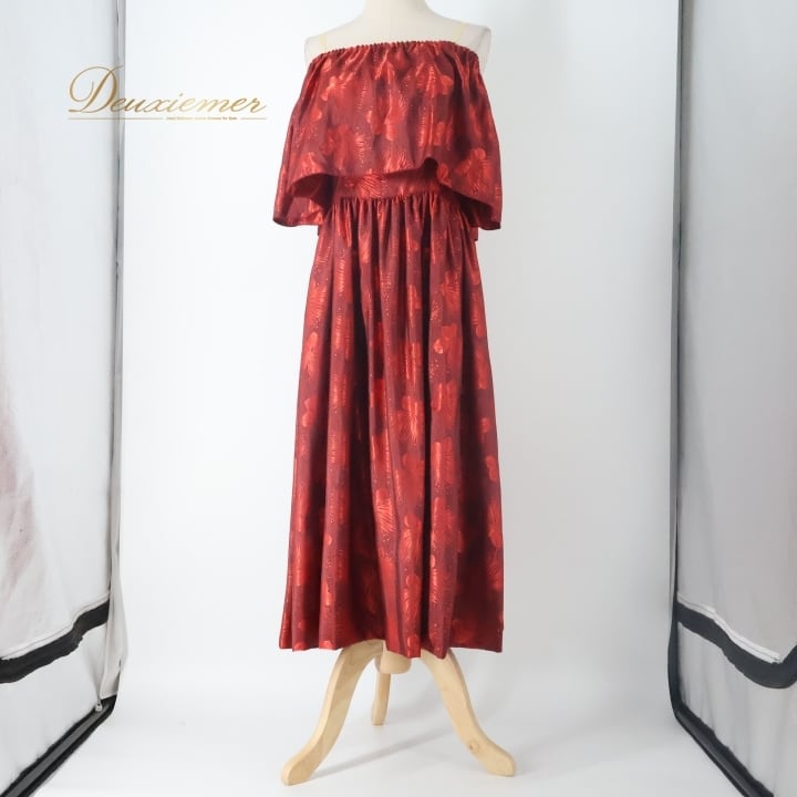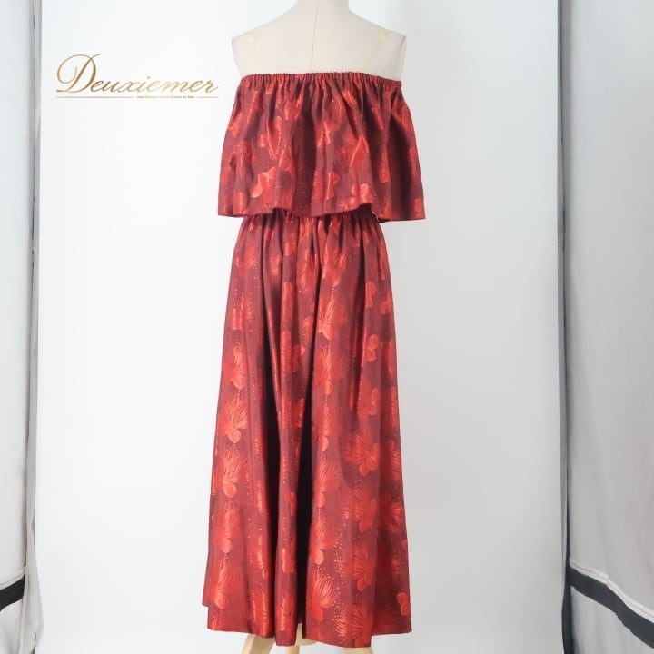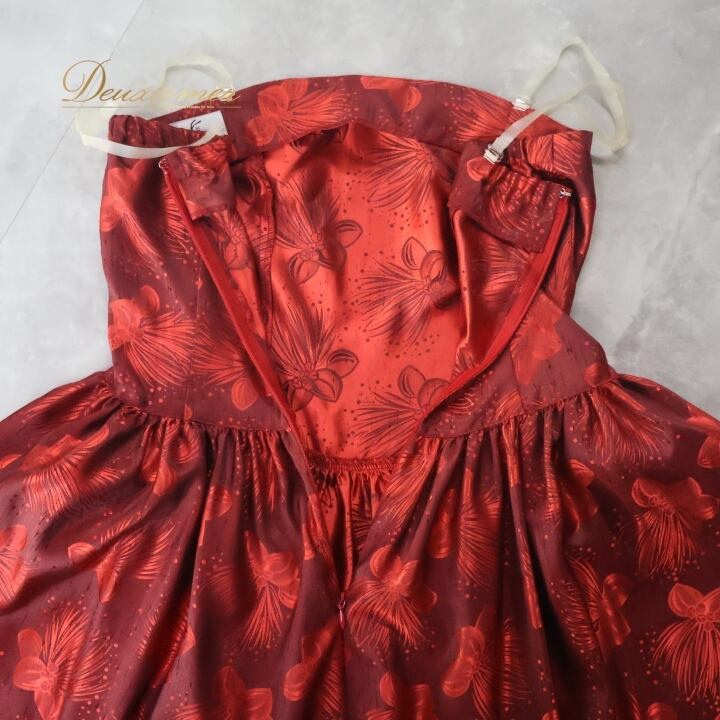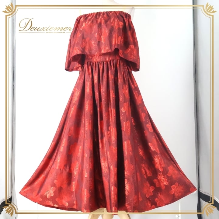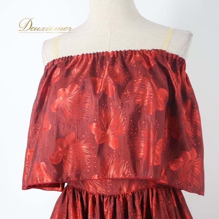 #フラダンス #フラダンス衣装 #ドレス #ワンピース #アロハスタンダード #日本製 #ブラウントレッド #華やか #光沢感 #フリル付き #サイズM #トルソー #女性用ファッション #ポリエステル #リゾートファッション #パーティーコスチューム #ダンス衣装 #トロピカル #ビーチスタイル #ENUTSU
