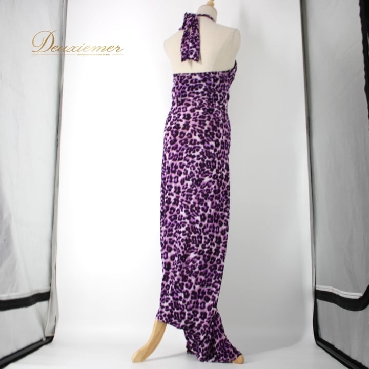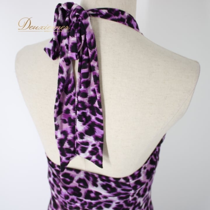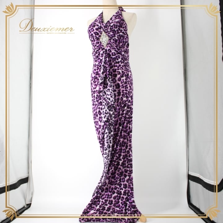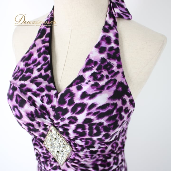 社交ダンス 衣装 スタンダード ドレス ワンピース パーティドレス 黒 紫 ホルターネック ブラック系 パープル系 ICHIOKU イチオク ヒョウ柄 レオパード 柄 発表会 用 ドレス セクシー フィット感 おしゃれ 普段使い オシャレ 着やすい 動きやすい ストレッチ カジュアル イベント 目立つ おすすめ バーゲン カラフル 夜会 結婚式 謝恩会 アウトドアイベント