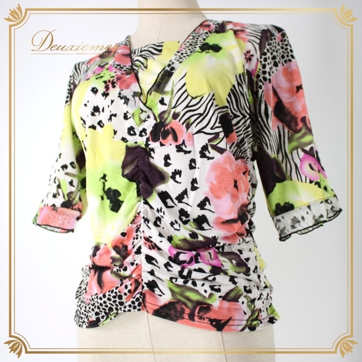 #社交ダンス #ダンス衣装 #ダンスファッション #トップス #レディースファッション #花柄 #ブラックホワイト #ピンク #イエロー #ライトグリーン #伸縮性 #おしゃれ #ダンス用 #バルーンスリーブ #カジュアルコーデ #トルソー #Mサイズ #シックスタイル #ダンスウェア #ENUTSU