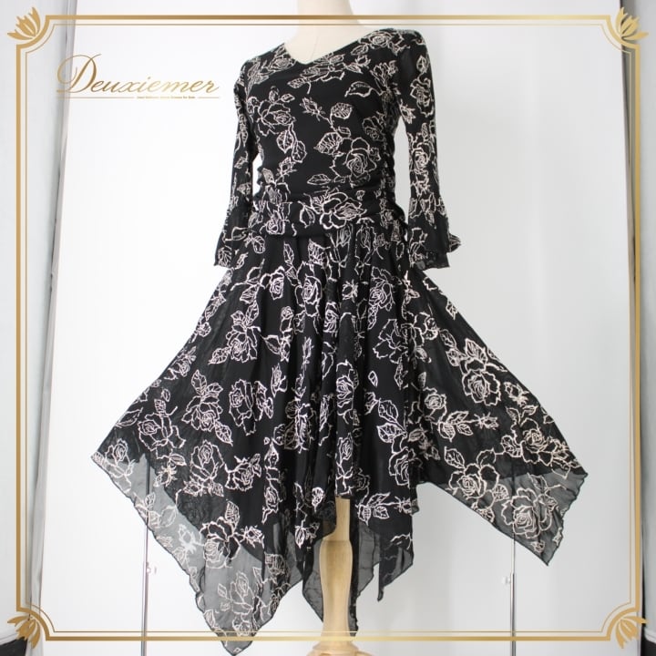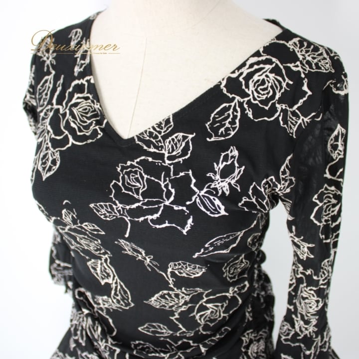 #社交ダンス #ダンス衣装 #ドレス #ファッション #ブラックホワイト #花柄 #伸縮性 #ポリエステル #ウエスト #トルソー #女性ファッション #おしゃれ #ダンススタイル #イベント衣装 #パーティードレス #シック #大人の女性 #春夏ファッション #ダンス用 #ENUTSU