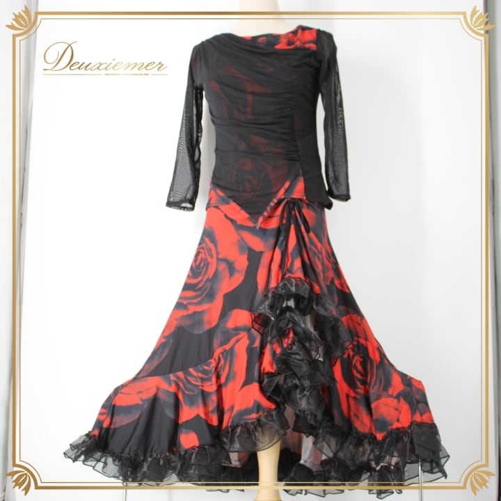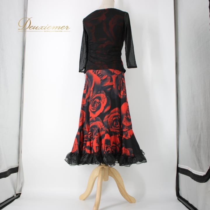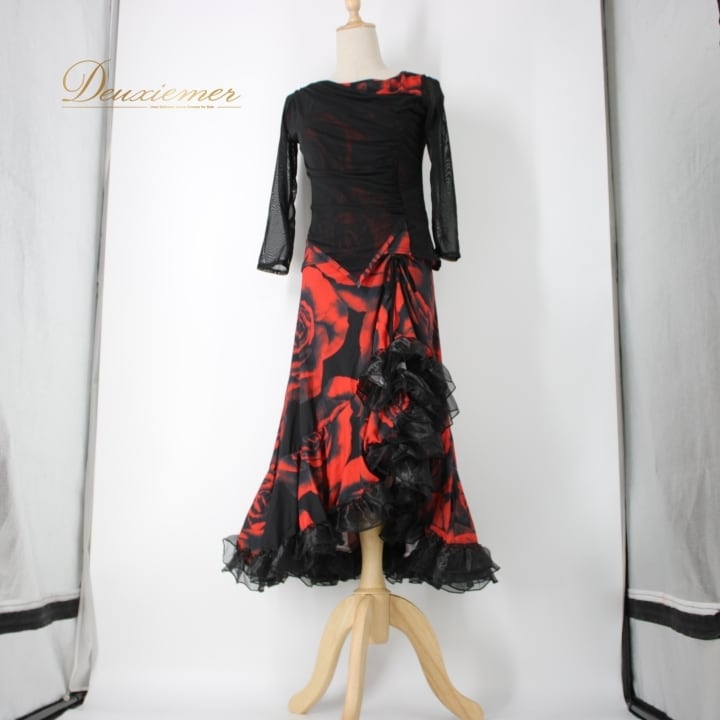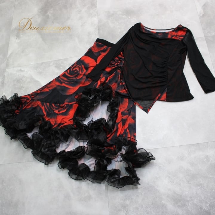 #社交ダンス #ダンス衣装 #セットアップ #ブラックレッド #花柄 #レイリーナ #伸縮性 #ウエストゴム #ポリエステル #ファッション #ダンスファッション #フォーマル #トルソー #ダンスイベント #コスチューム #女性用 #ダンス衣装コーデ #レッスン用 #ダンススタイル #ENUTSU