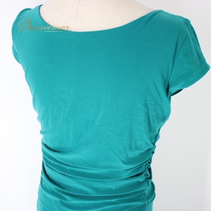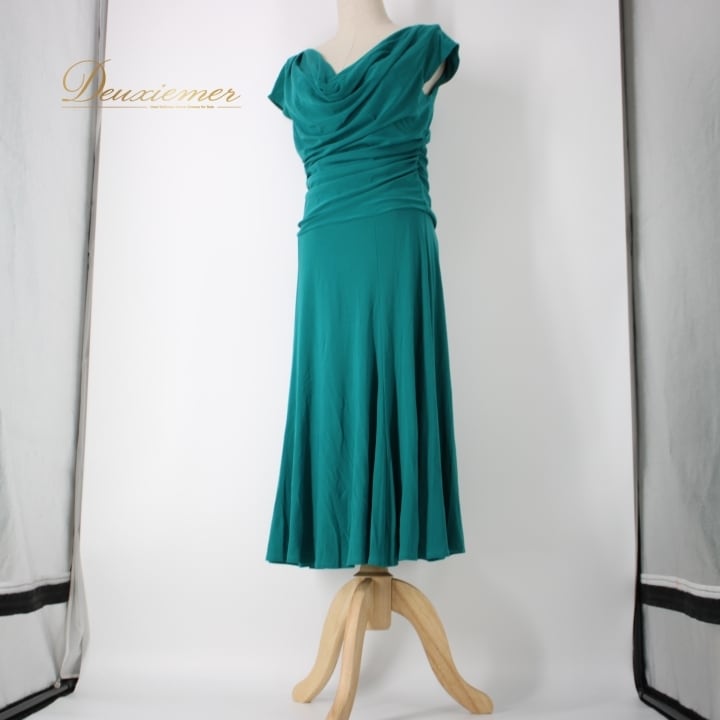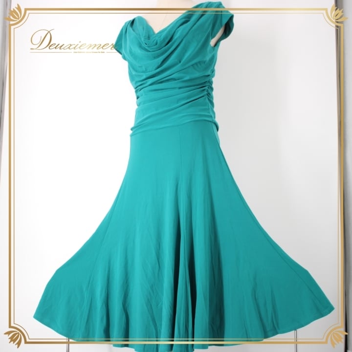 社交ダンス 衣装 スタンダード ドレス ワンピース レッスンウェア パーティドレス 演奏会 グリーン系 Sharon Max 緑 無地 シンプル 上品 エレガント フレッシュ 伸縮性 ドレープ シンプルデザイン 105cm 総丈 ポリエステル ライクラ 41cm 身幅 33.5cm ウエスト 40cm 肩幅