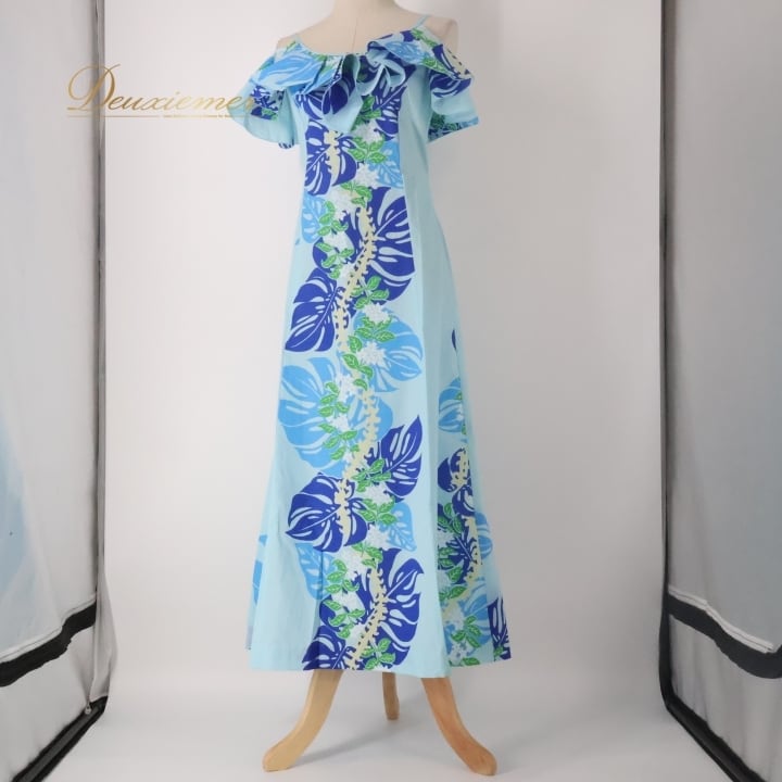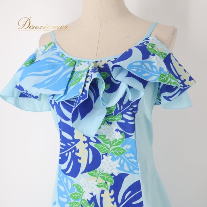 #フラダンス衣装 #ワンピース #ドレス #MermaidLine #エムエムジェイ #日本製 #モンステラ柄 #ブルー #踊る #フラダンス #衣装 #マリンスタイル #夏のファッション #ビーチスタイル #リゾートファッション #女性用 #トルソー #サイズS #おしゃれ #ENUTSU