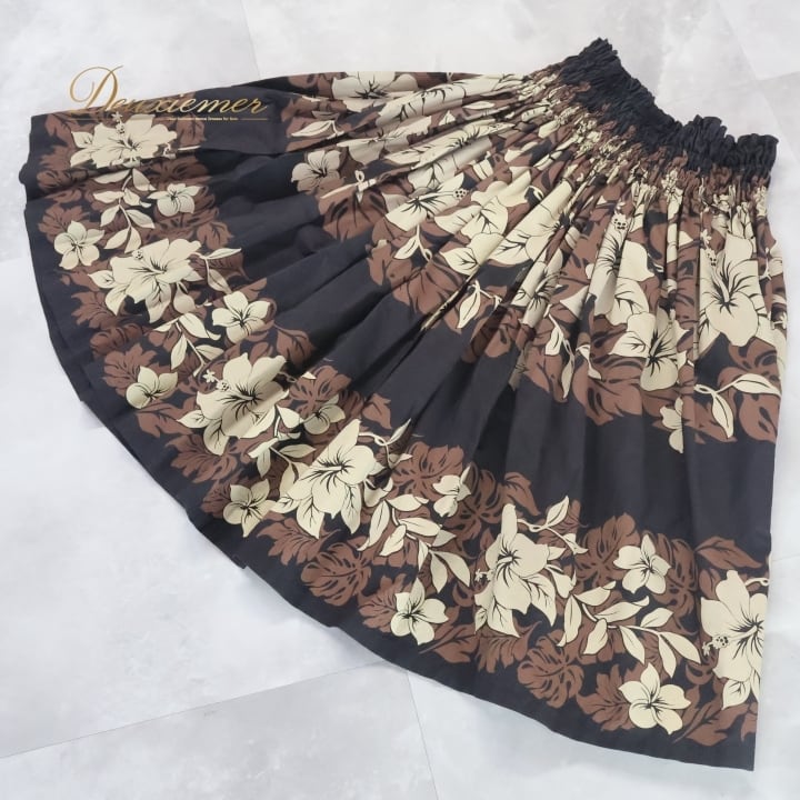 フラダンス 衣装 パウスカート ブラック系 ハイビスカス柄 植物柄 花柄 ハワイアンプリント アロハ フラ ダンス レッスン 練習 シングル スカート ブラウン系 ベージュ系 黒 茶 華やか かわいい おしゃれ 上品 大人っぽい フラダンス衣装 フラダンス用スカート ホワイト系 練習着 おしゃれなデザイン フラレッスン
