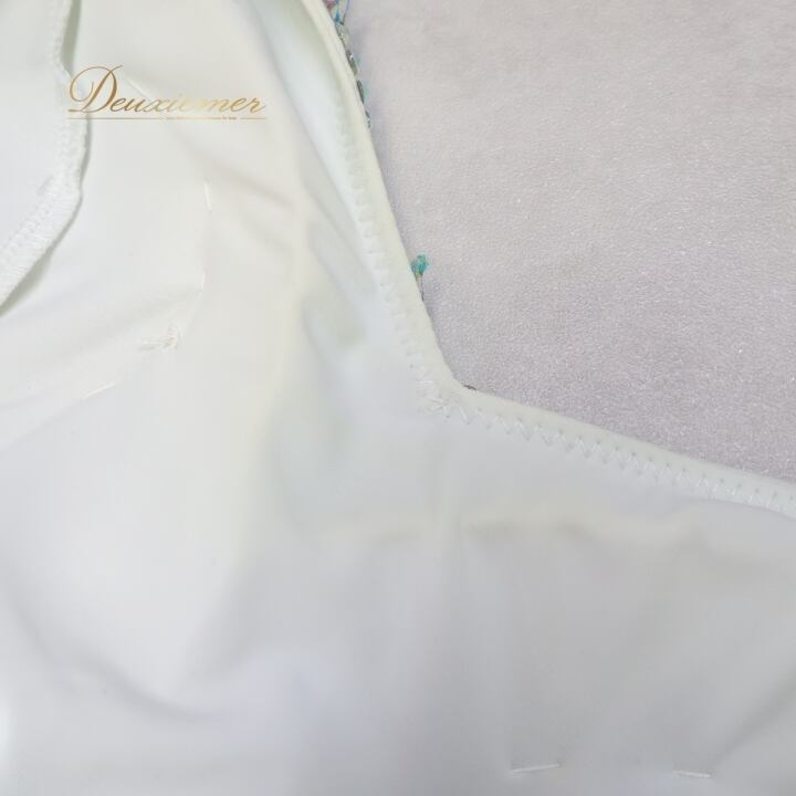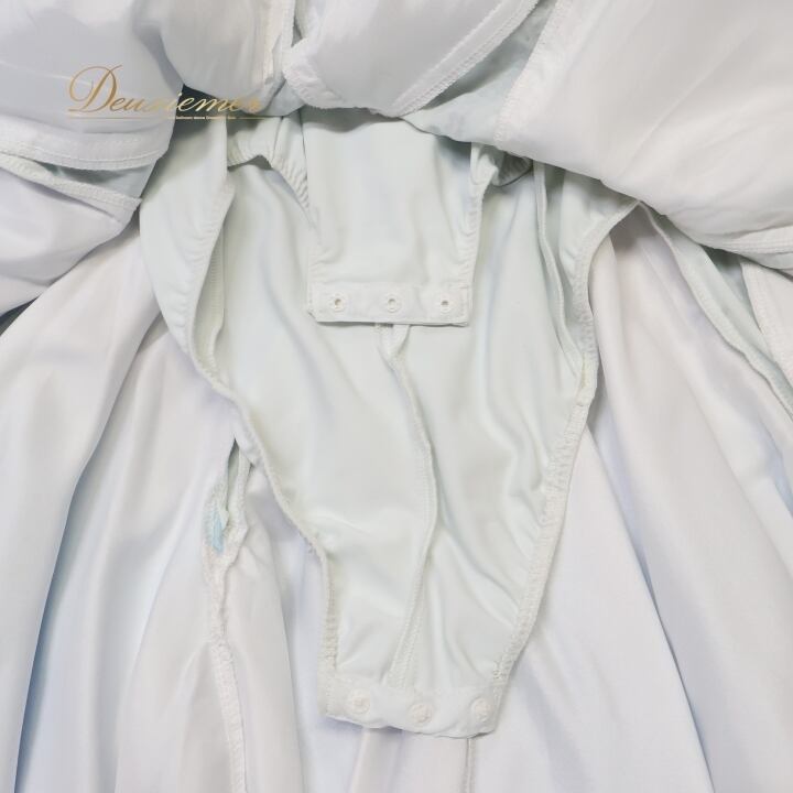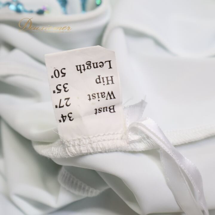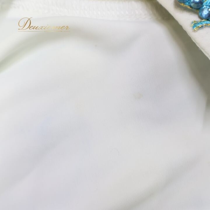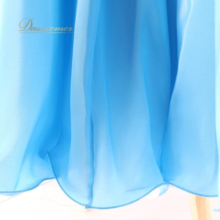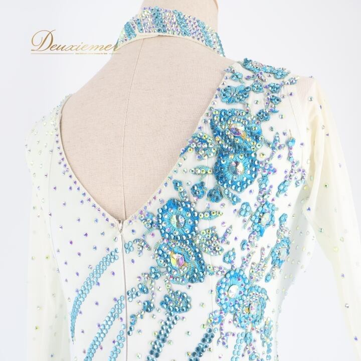 #社交ダンス #ダンス衣装 #ワンピース #ドレス #ダンスドレス #白水色 #グラデーション #スカート重ね #ファスナー #伸縮性 #胸パッド #トルソー #女性用衣装 #ダンスファッション #競技ダンス #パーティードレス #おしゃれ #ステージ衣装 #夏ファッション #ダンススタイル #ENUTSU