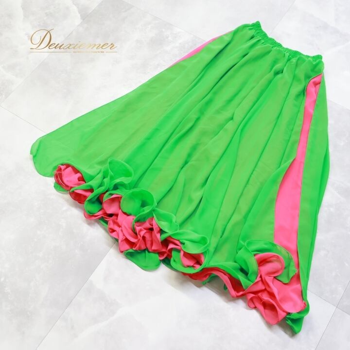 #ベリーダンス #オリエンタル衣装 #ダンススカート #スカート #グリーン #ピンク #ウエストゴム #エレガント #パフォーマンス #コスチューム #舞台衣装 #ファッション #ダンス用衣装 #スリットスカート #ポリエステル #ダンス #ダンスファッション #アジアンスタイル #コスプレ #ENUTSU