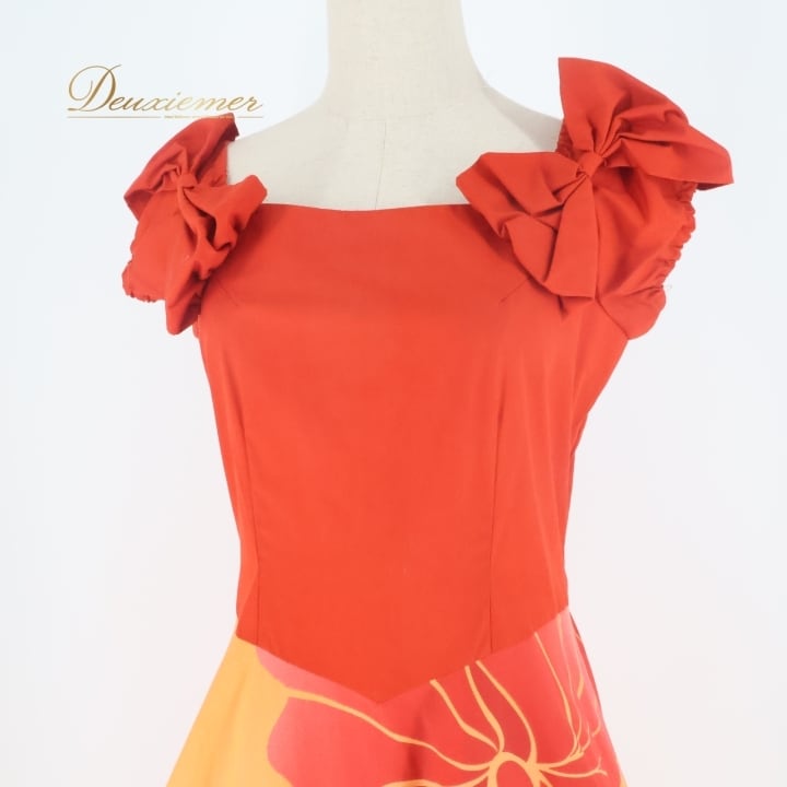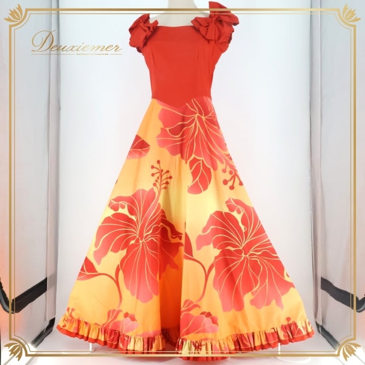 #フラダンス #衣装 #ワンピース #ドレス #日本製 #ALOHAスタンダード #フリル #リボン #レッド #オレンジ #イエロー #ダンス衣装 #フラダンス衣装 #女性用 #おしゃれ #可愛い #サイズ6 #特別な日 #お揃い #ENUTSU
