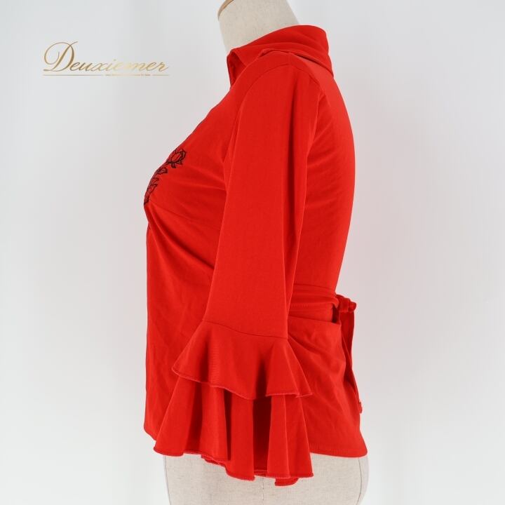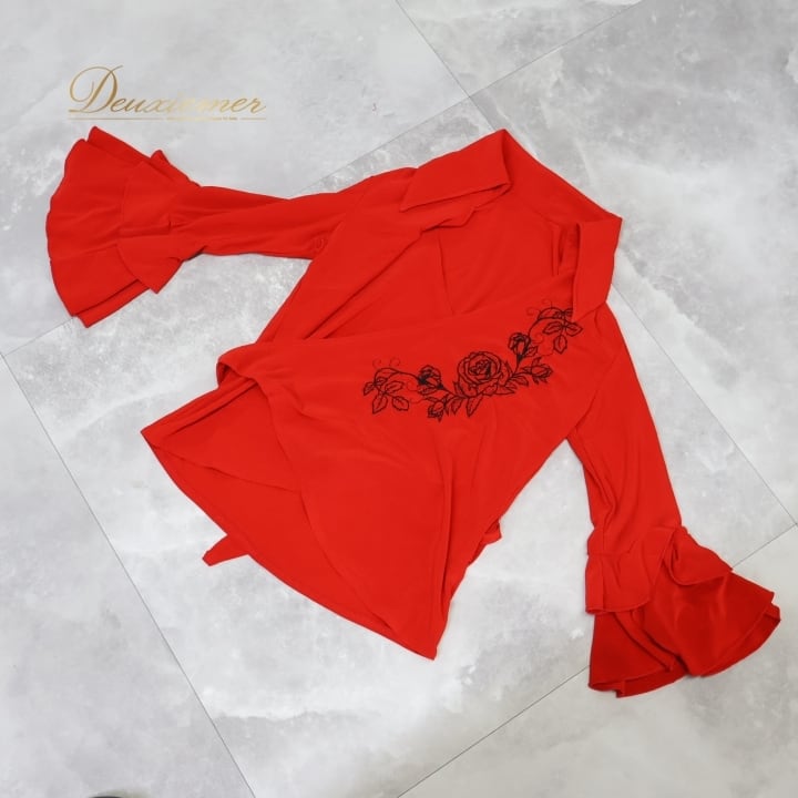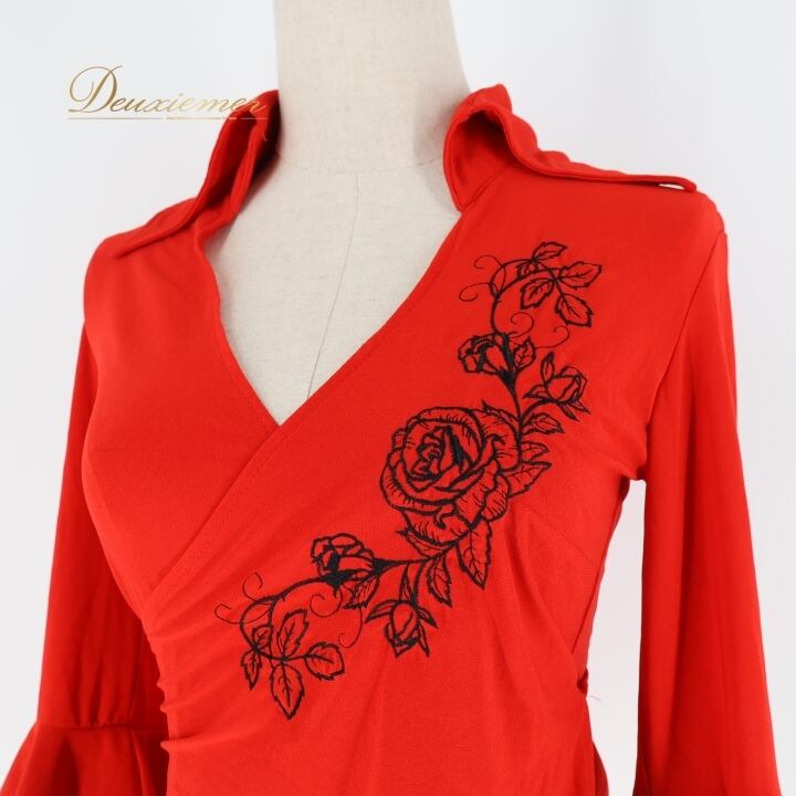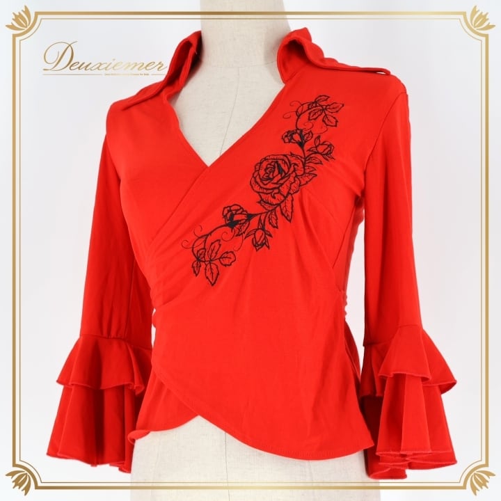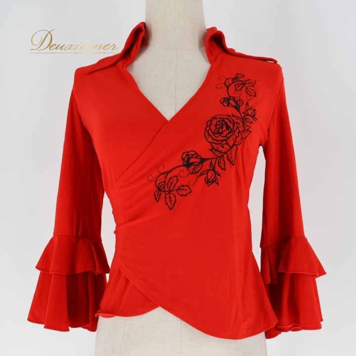 #フラメンコ #衣装 #トップス #ブラウス #赤 #レッド #花柄 #刺繍 #ダンス #フラメンコダンス #おしゃれ #ファッション #パーティー #女性用 #春夏 #コスチューム #ステージ衣装 #可愛い #トルソー #ENUTSU