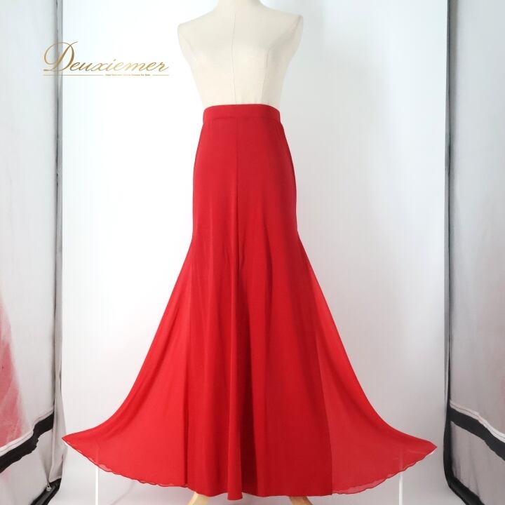 社交ダンス 衣装 スカート レッド系 チャコット Chacott 赤 レッスン 練習 上品 日本製 シンプル 無地 ダンス衣装 華やか 鮮やか かわいい おしゃれ シルエット エレガント コーディネート フォーマル ストレッチ 大人用 女性用 着まわし 柔らかい 軽い ダンス教室