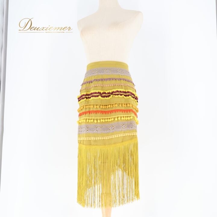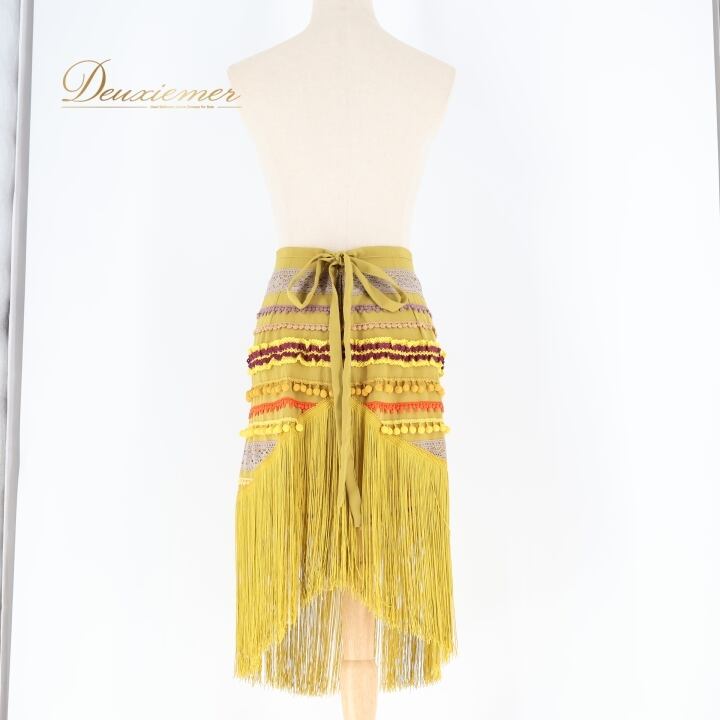 平置き実測:総丈(フリンジ先まで)約65cm、ウエスト(巻く部分リボン除く)約30cm