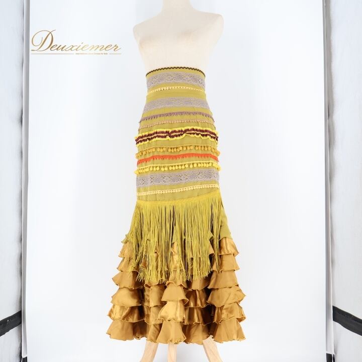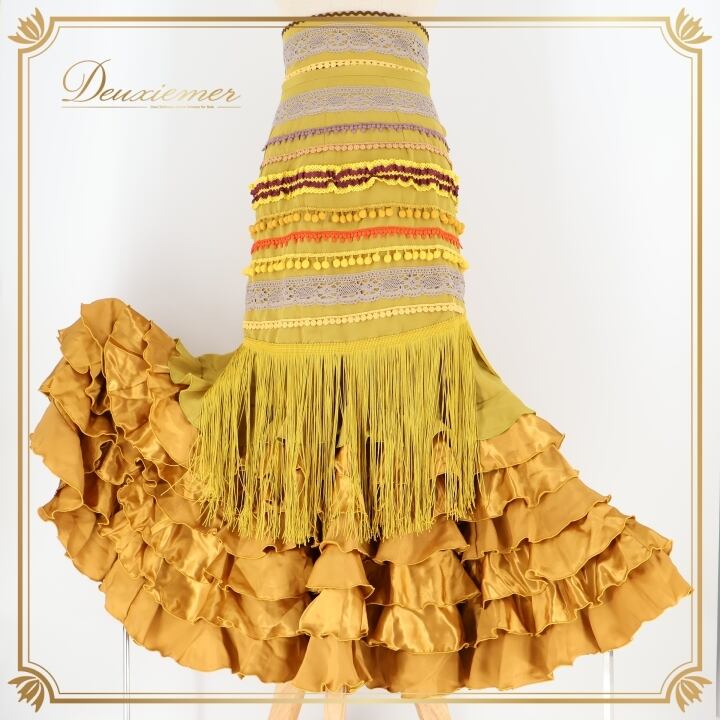 #フラメンコ #ファルダ #スカート #衣装 #ダンス #フラメンコ衣装 #エプロン #黄土色 #お洒落 #パフォーマンス #背面ファスナー #トルソー #サイズS #華やか #女性用 #ファッション #コスチューム #イベント #舞台 #ENUTSU
