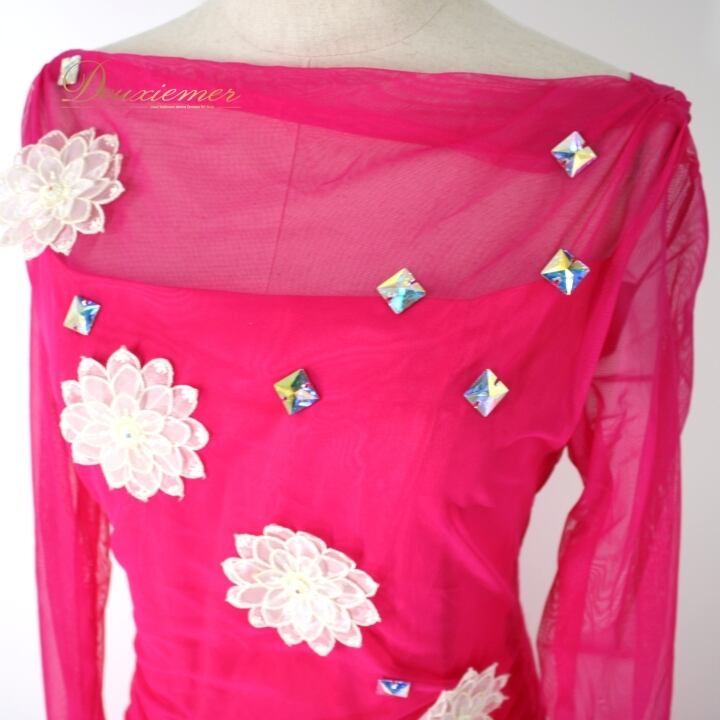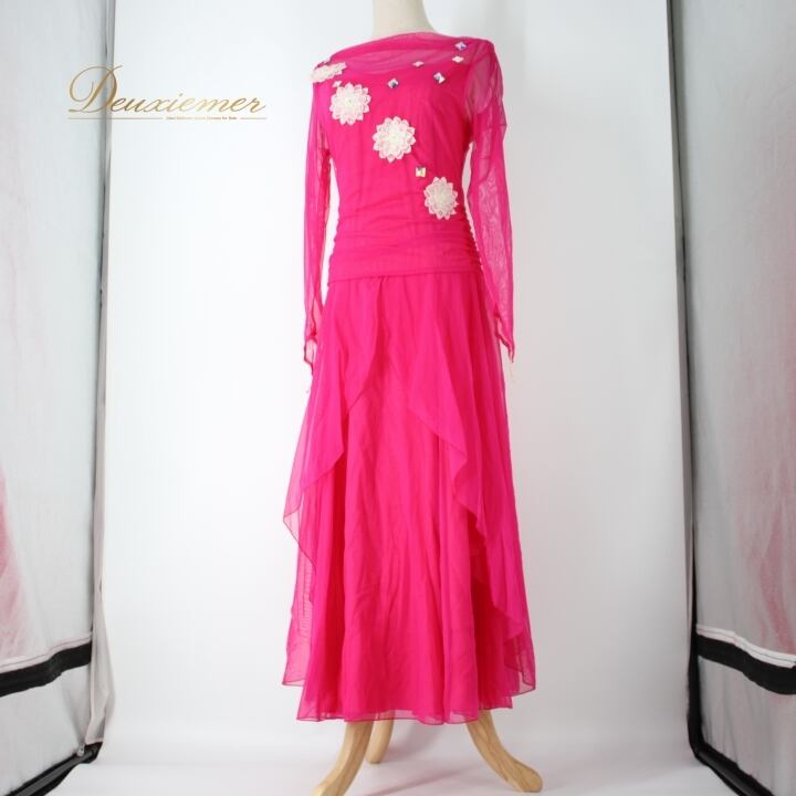 #社交ダンス #ダンス衣装 #ドレス #マゼンダピンク #日本製 #ダンスファッション #女性用トルソー #おしゃれ #伸縮性 #ファスナー仕様 #ポリエステル #ナイロン #ポリウレタン #大人の魅力 #ダンスステージ #アクセサリー #舞台衣装 #パフォーマンス #エレガント #ダンスライフ #ENUTSU