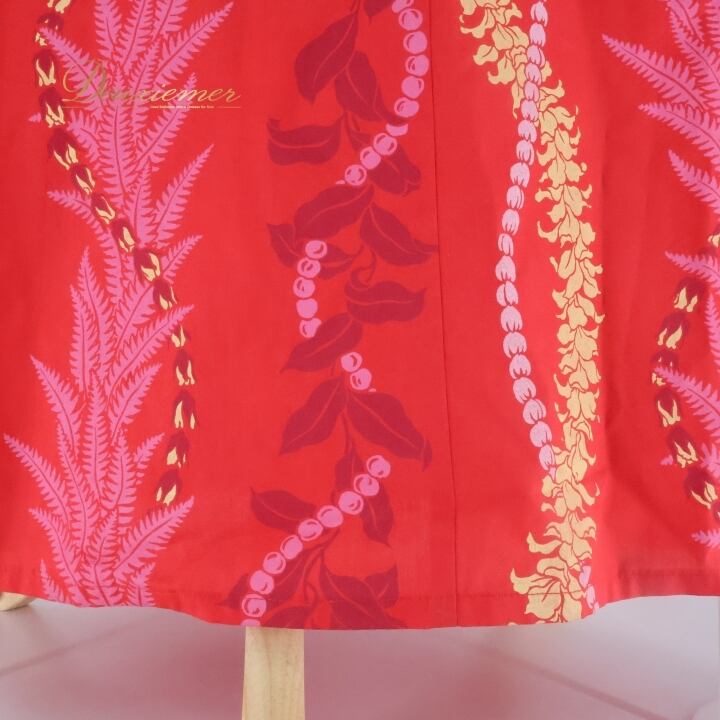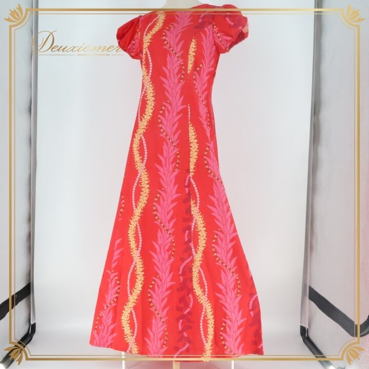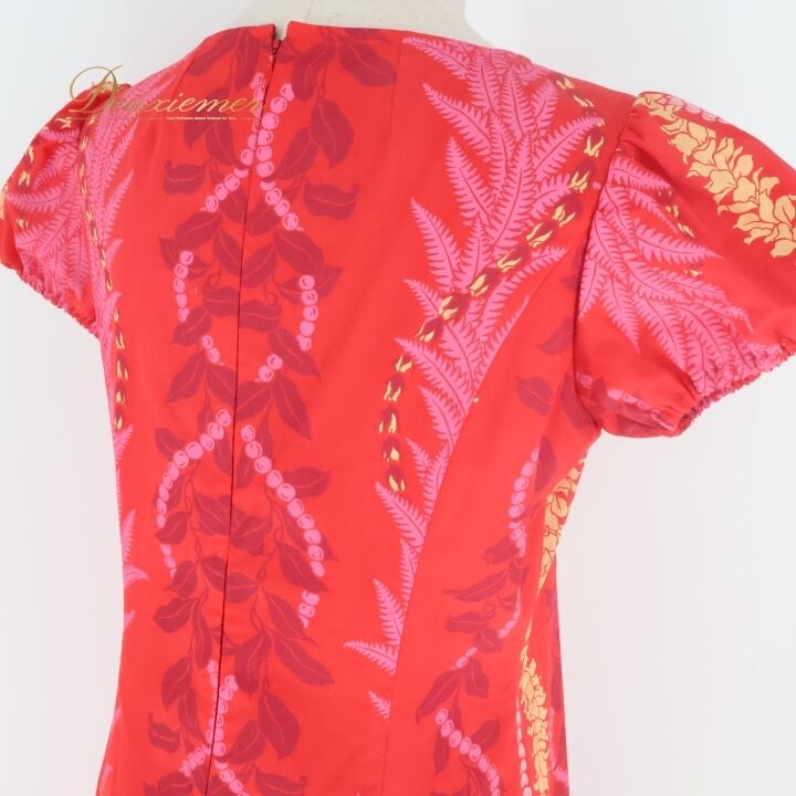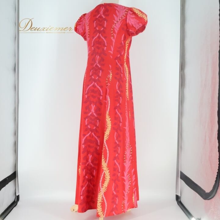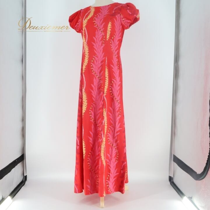フラダンス 衣装 ワンピース ドレス レッド系 パフスリーブ レイ柄 シンプル かわいい 華やか 鮮やか 明るい おしゃれ 赤 黄 ハワイアン アロハ ハワイアンプリント フラ ダンス レッスン 練習 イエロー系 フラ衣装 レディース