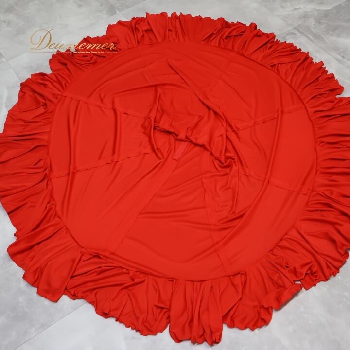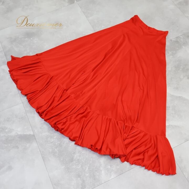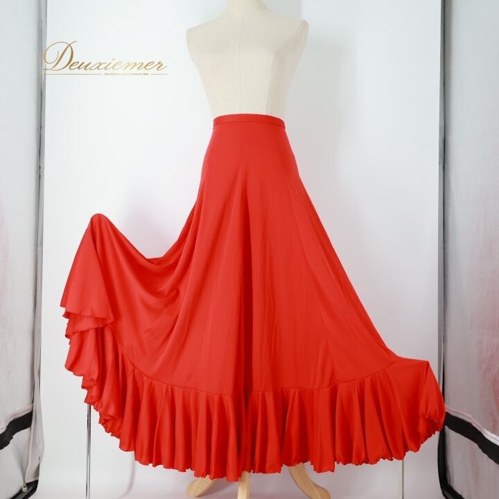 フラメンコ 衣装 ファルダ スカート レッド系 赤 無地 シンプル 練習 レッスン 伸縮 ストレッチ ペチコート インナー 鮮やか ダンス衣装 ステージ イベント 柔らかい生地 ボランテ フリル