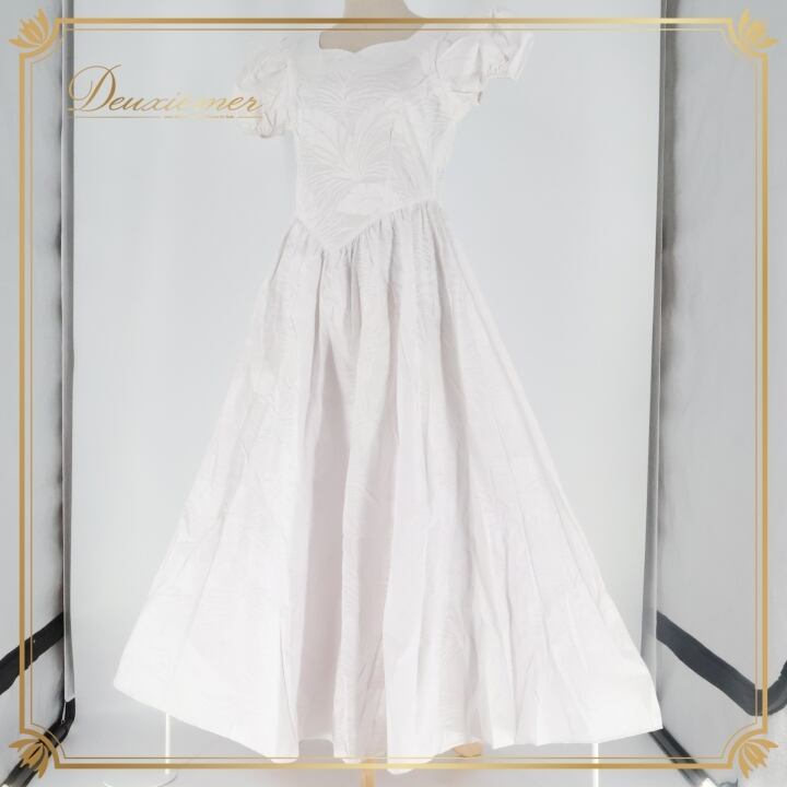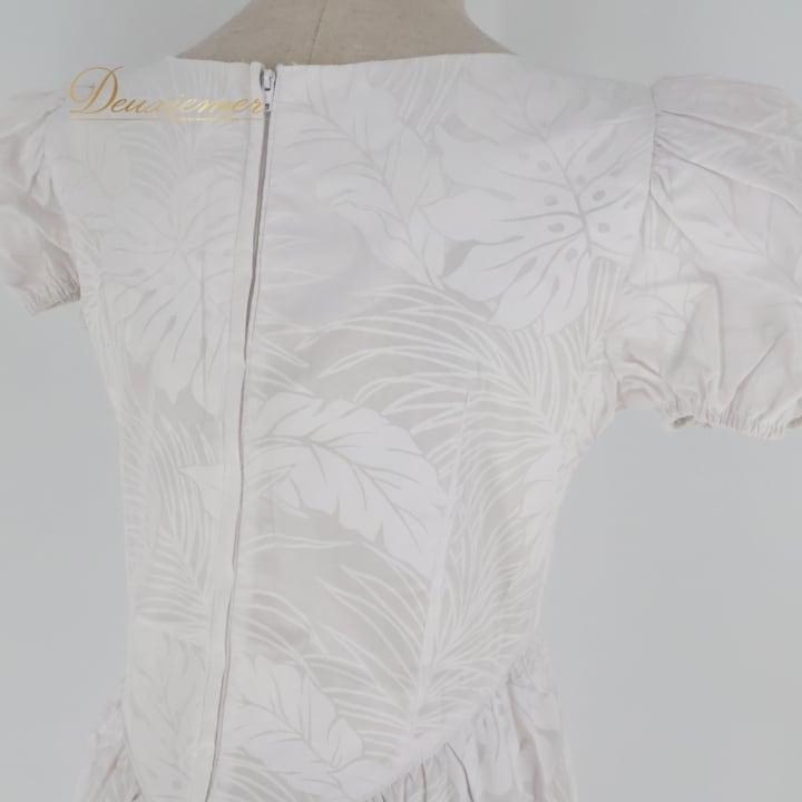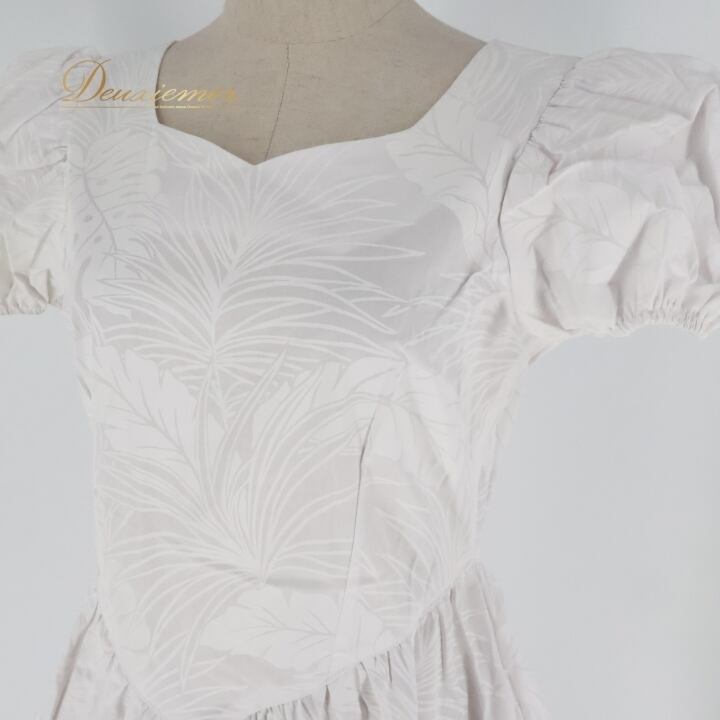 #フラダンス #衣装 #ワンピース #ドレス #ハワイアン #ムームーファクトリー #白 #上品 #華やか #女性用トルソー #フラダンス衣装 #ファッション #ポリエステル #コットン #アロハ #日本製 #ダンス #夏祭り #リゾート #ENUTSU