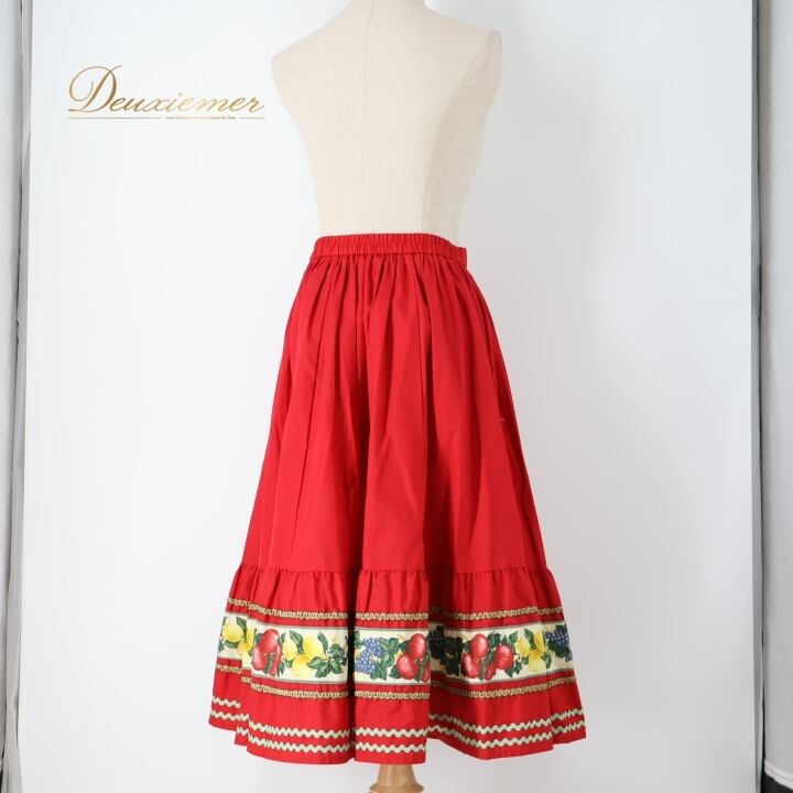 フォークダンス 衣装 スカート レッド系 サカイ チロリアン チロルスカート フルーツ柄 果物柄 レモン ぶどう 赤 黄 青 緑 カントリー SAKAI かわいい ダンス衣装 イベント 練習 レッスン イエロー系 ゴールド系 グリーン系 ブルー系