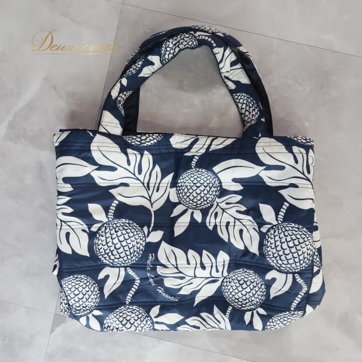 フラダンス 小物 バッグ ネイビー系 フララニ フラ ダンス トートバッグ 中綿 大き目 ホワイト系 紺 白 綿入り ハワイアン アロハ Hula Lani ハワイアンプリント フラバッグ トート 大きめバッグ レジャー バッグ ハワイ柄 軽量 おしゃれ 日常使い 旅行用 ショッピングバッグ カジュアル 収納力 折りたたみ かわいいデザイン