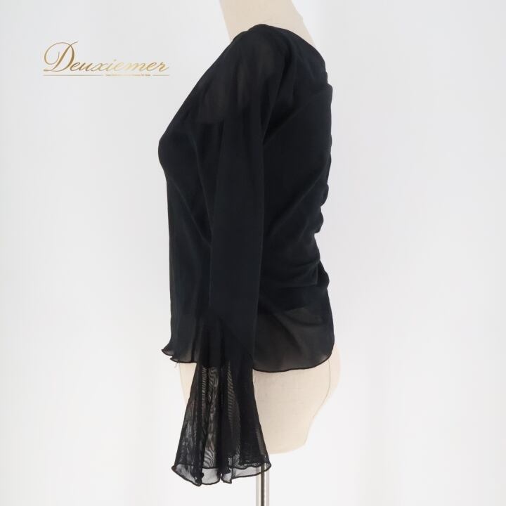 社交ダンス 衣装 トップス ブラウス ブラック系 チャコット Chacott レッスン 練習 黒 透け感 チュール 日本製 ふんわり 大人っぽい 上品 おしゃれ フレア レディース ダンスウェア 軽やか 透け感素材 シンプル きれいめ スタイリッシュ