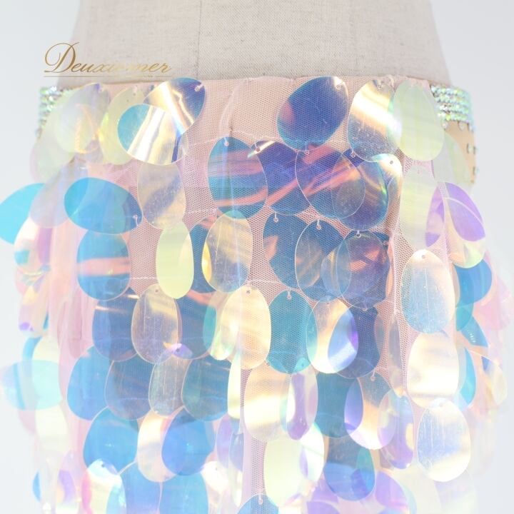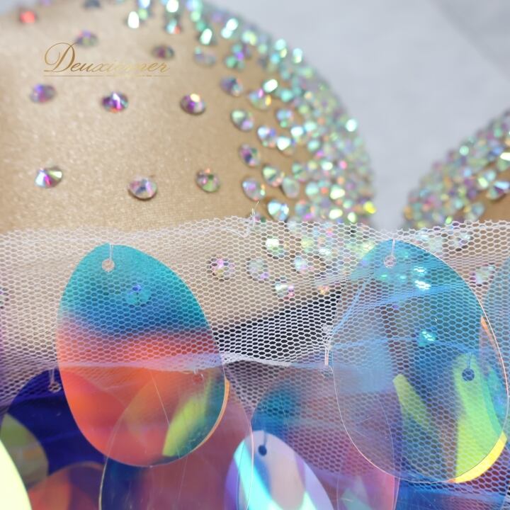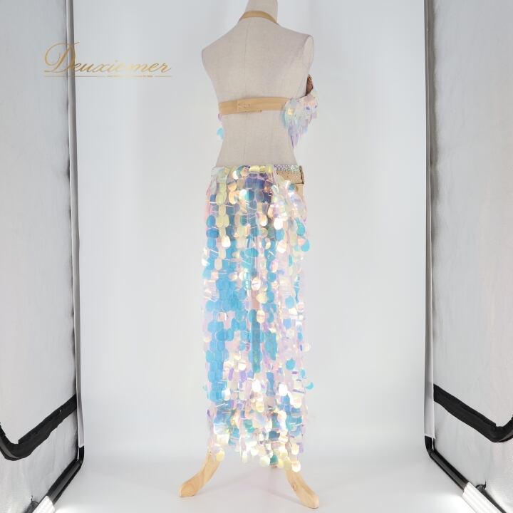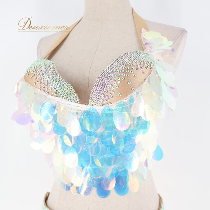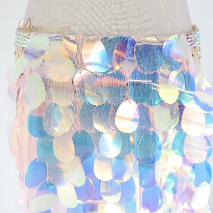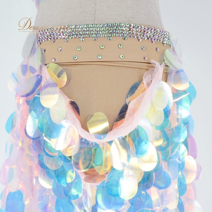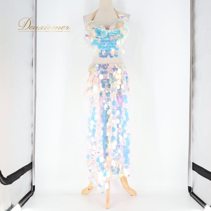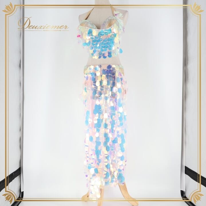 ベリーダンス オリエンタル 衣装 上下セット ブルー系 ポリーナ POLINA トップス スカート インナーパンツ ホログラム スパンコール キラキラ 華やか ダンス衣装 イベント ステージ 豪華 装飾 ホワイト系