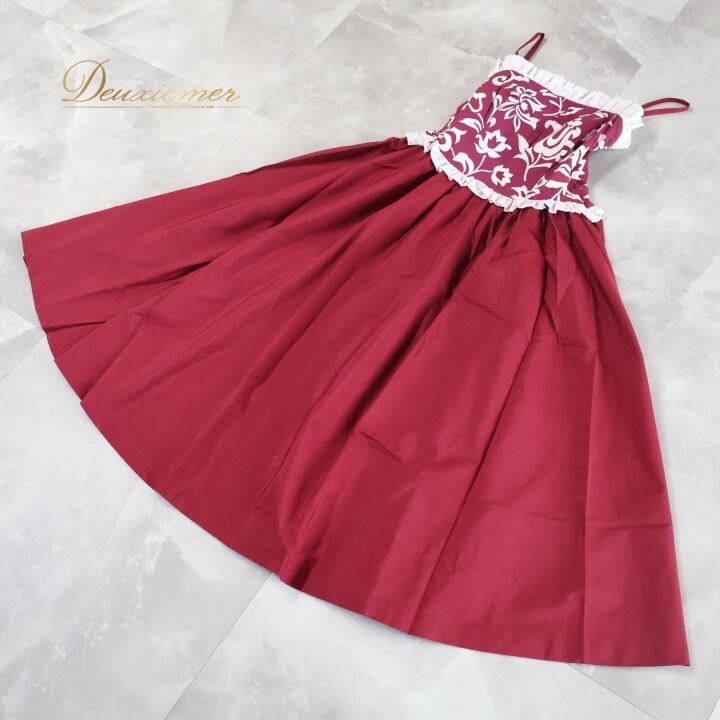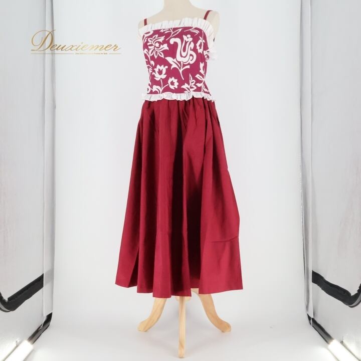 #フラダンス #フラダンス衣装 #ワンピース #ドレス #あずき色 #おしゃれ #フリル付き #女性用トルソー #ダンスコスチューム #アロハ #ハワイアン #民族衣装 #夏フェス #ダンスイベント #かわいい #ファッション #カラフル #衣装 #コスプレ #ENUTSU