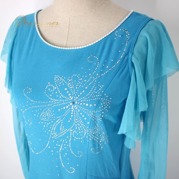 #社交ダンス #ダンスドレス #ダンス衣装 #ライトブルー #ラインストーン #ファスナー仕様 #伸縮性 #ポリエステル #トルソー #日本製 #女性用ファッション #社交ダンス衣装 #ダンスファッション #舞台衣装 #パーティードレス #エレガント #フィットネス #ダンスパフォーマンス #ダンスライフ #ダンススタイル #ENUTSU