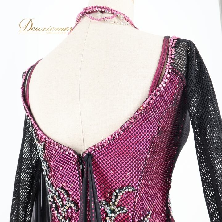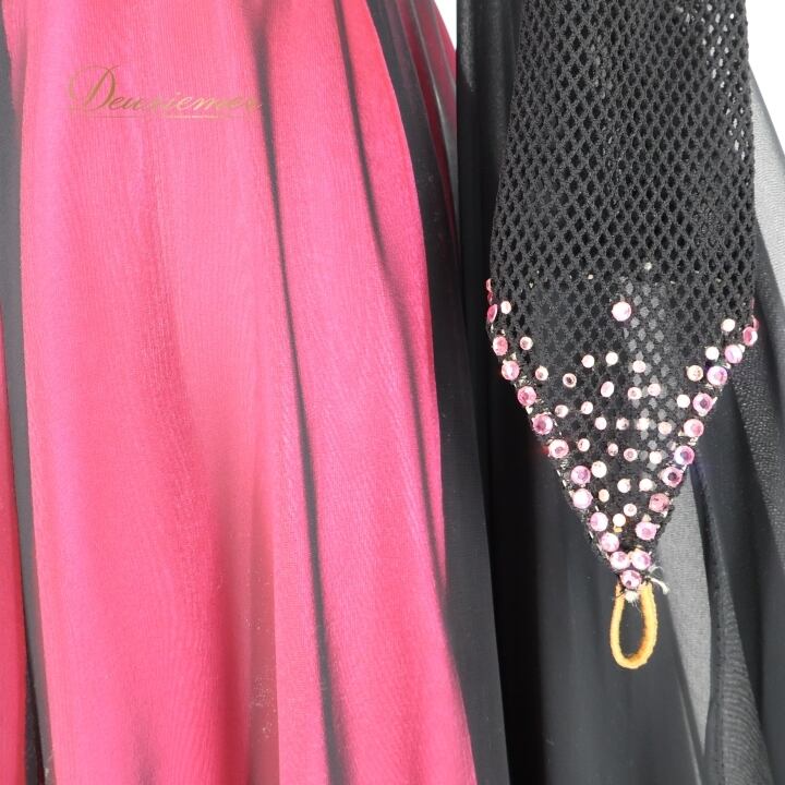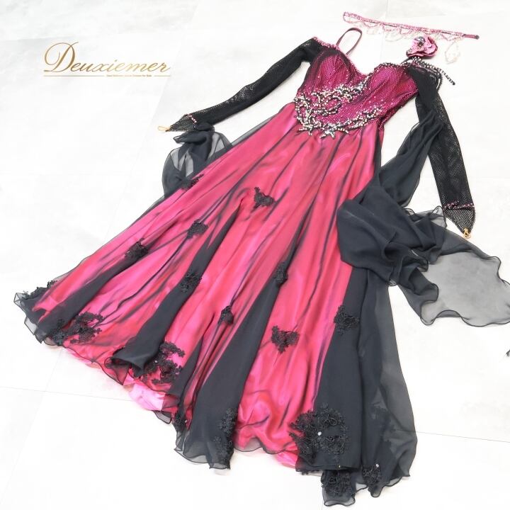 #社交ダンス #ダンス衣装 #ワンピース #ドレス #ピンク #黒 #女性らしい #スカート #ファスナー #胸パッド #伸縮性 #TAKADANCE #軽やか #オシャレ #Mサイズ #サイズ展開 #舞台衣装 #ダンスファッション #フレアスカート #ENUTSU