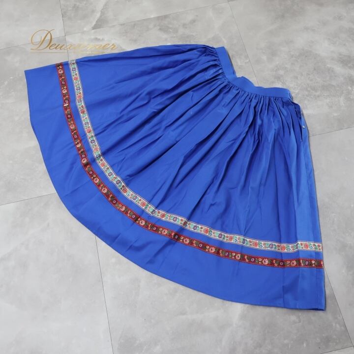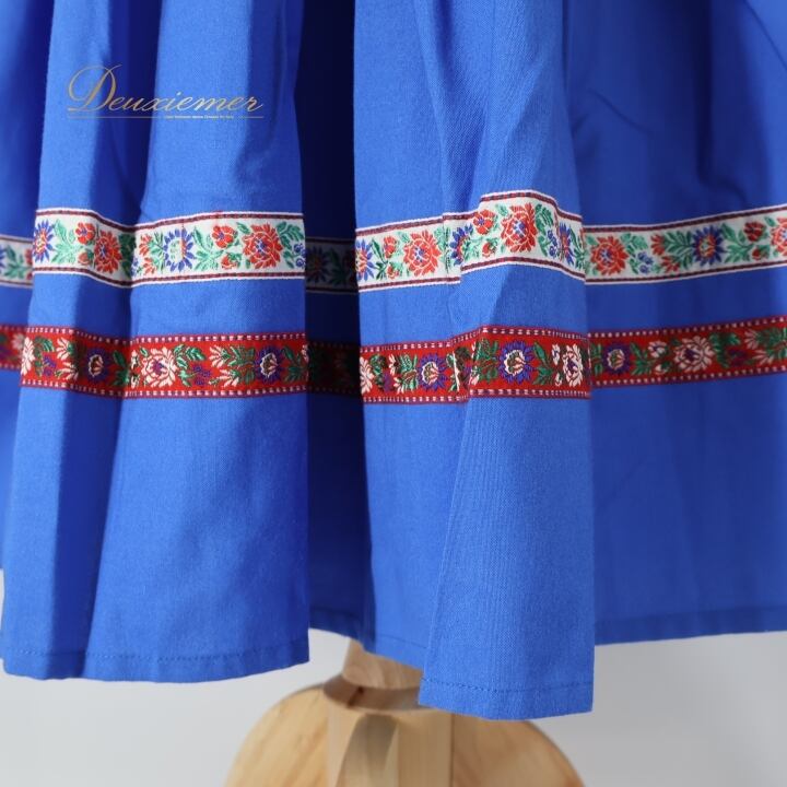 #フォークダンス #衣装 #スカート #ブルー #花柄 #刺繍 #ハンガリー製 #ダンス衣装 #ファッション #女性用 #Lサイズ #ポリエステル #綿 #トルソー #スタイリング #ダンススタイル #フォークダンス衣装 #可愛い #カジュアル #ENUTSU