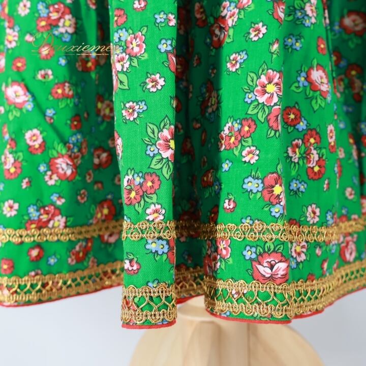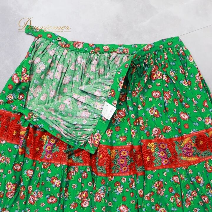 フォークダンス 衣装 スカート グリーン系 花柄 刺繍 緑 赤 紫 黄 ハンガリー製 かわいい チロリアン チロルスカート カントリー 華やか 鮮やか ダンス衣装 イベント 練習 レッスン ボタン レッド系 パープル系 イエロー系 ピンク系