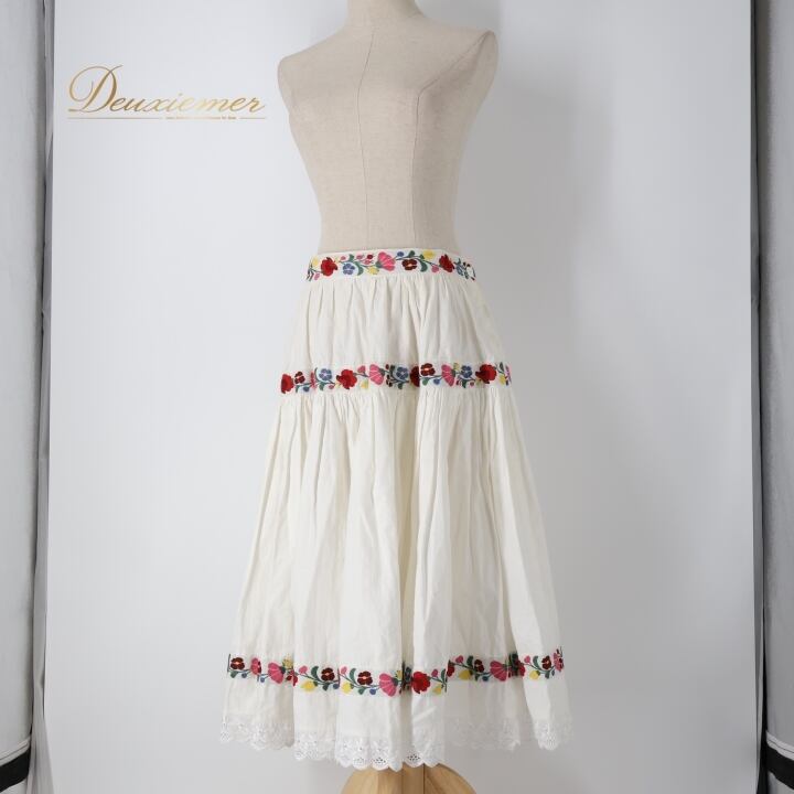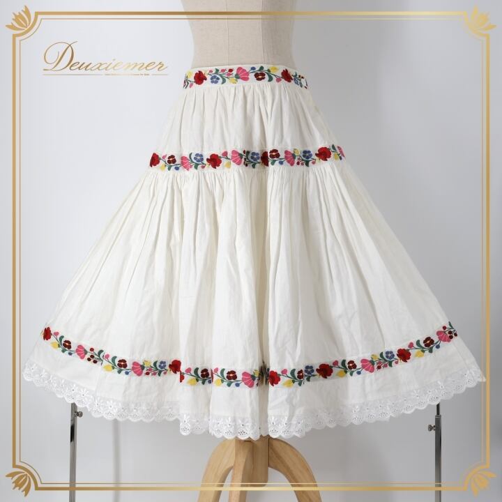 #フォークダンス衣装 #スカート #ホワイト #花柄 #刺繍 #フォークダンス #ダンス衣装 #女性用 #Lサイズ #ポリエステル #レーヨン #おしゃれ #ファッション #イベント #カラフル #新作 #衣装 #ウエストボタン #気軽に着られる #ENUTSU
