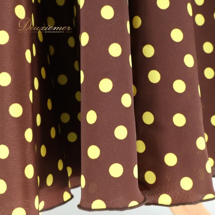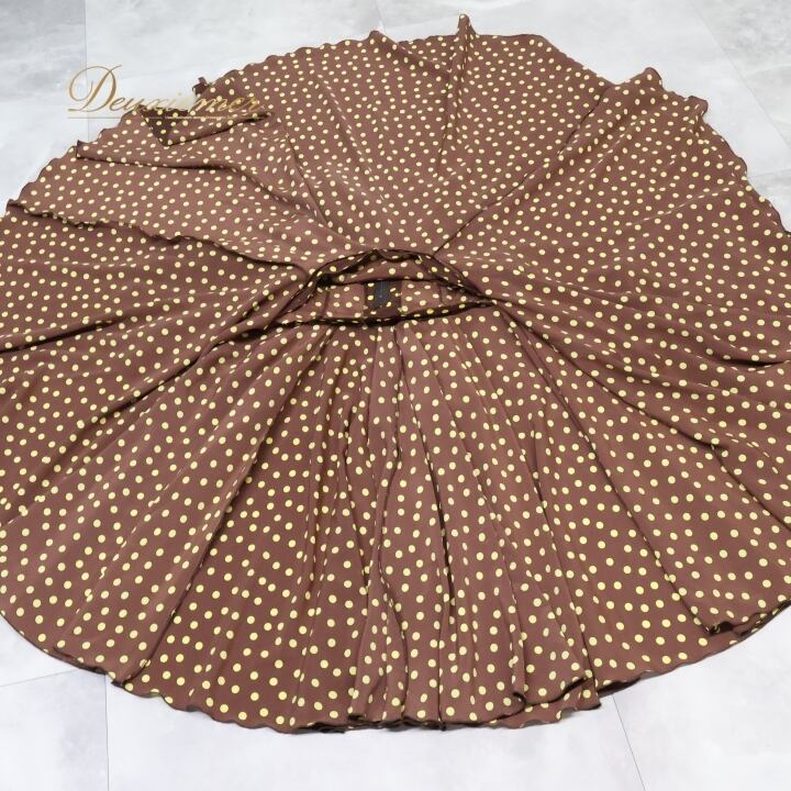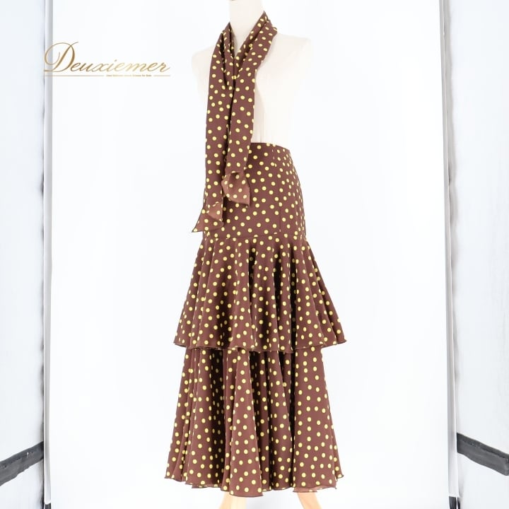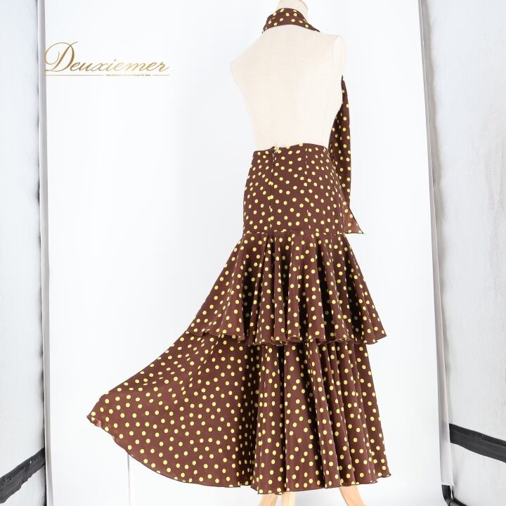 フラメンコ 衣装 ファルダ スカート ボウタイ 茶色 黄色 ドット 水玉 レトロ カントリー かわいい フリル ボランテ ダンス パーティ 発表会 ブラウン系 イエロー系 レディース おしゃれ コスチューム 大人