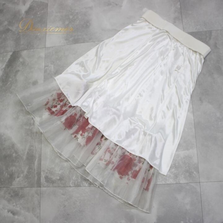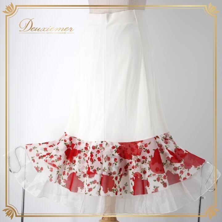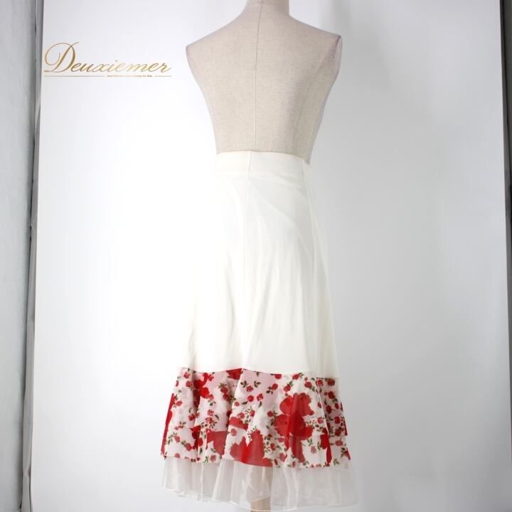 #社交ダンス #ダンス衣装 #スカート #ホワイトレッドグリーン #花柄 #ウエストゴム #伸縮性 #ポリエステル #ダンスファッション #トルソー #女性用 #ダンススタイル #ファッション #おしゃれ #ダンスコーデ #パーティー衣装 #衣装 #衣装レンタル #秋冬ファッション #ENUTSU