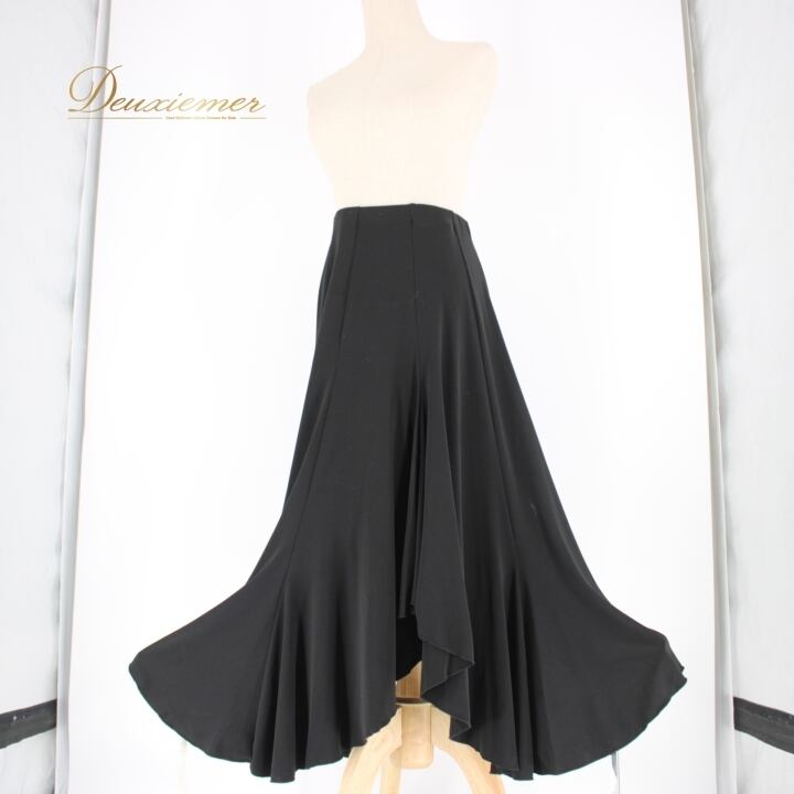#社交ダンス #ダンス衣装 #スカート #クラシックブラック #シンプルデザイン #ウエストゴム #伸縮性 #ポリエステル #ダンスファッション #衣装販売 #女性用 #トルソー #フィット感 #気品 #パフォーマンス #ダンススタイル #特別な日 #ダンスシーン #日本製 #ENUTSU