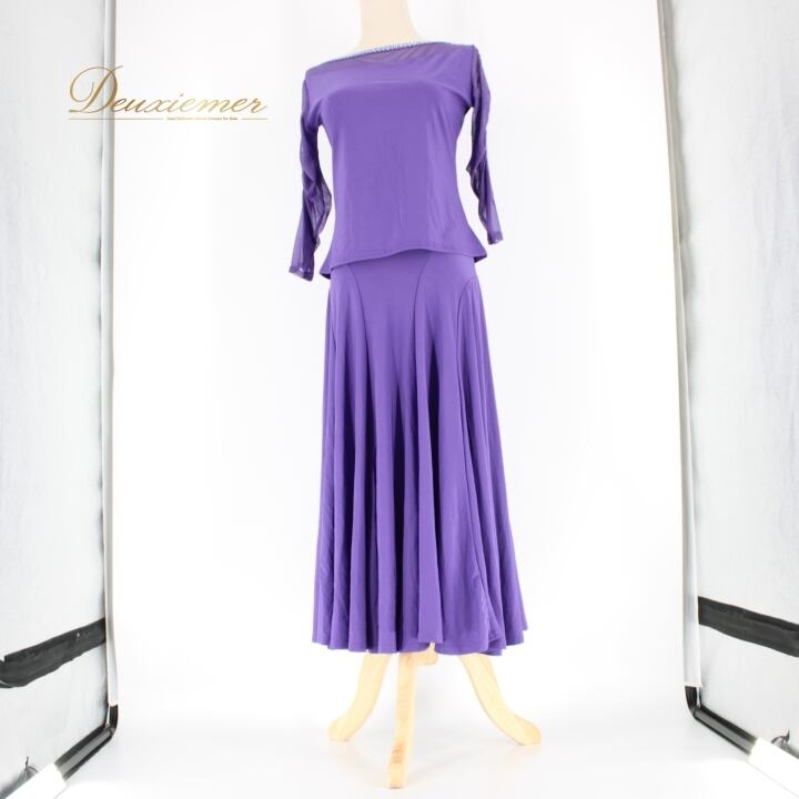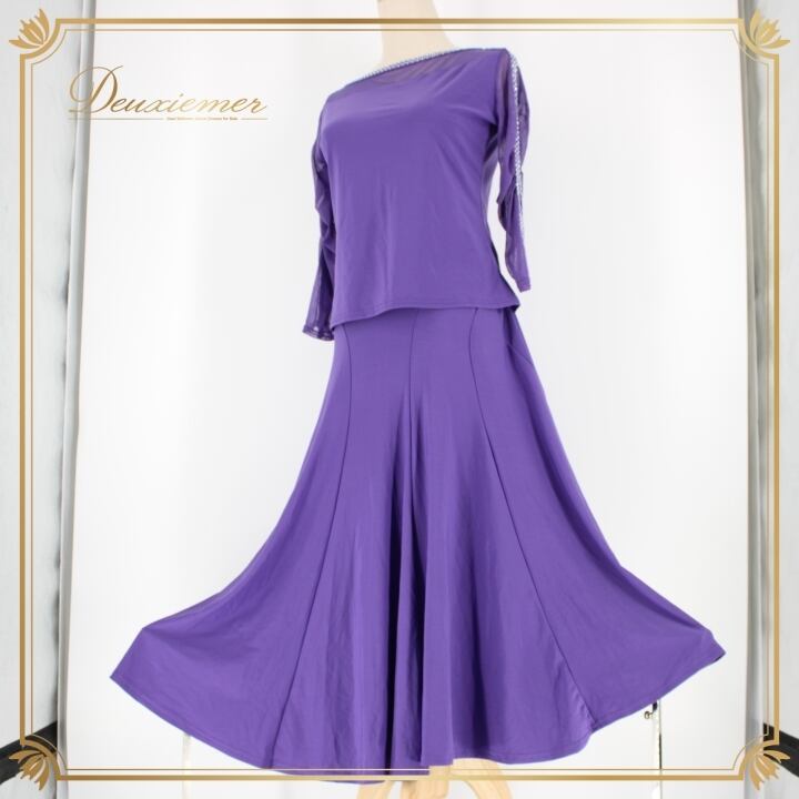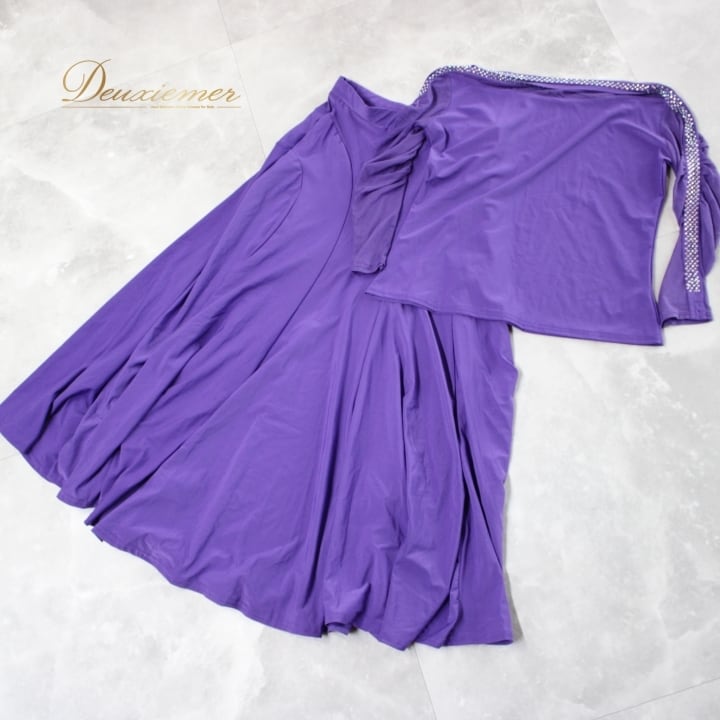 #社交ダンス #ダンス衣装 #セットアップ #レイリーナ #バイオレット #ラインストーン #ダンスファッション #ダンススタイル #レディースファッション #ダンスコーデ #パーティードレス #伸縮性 #ウエストゴム #ポリエステル #社交ダンス衣装 #大人の魅力 #トルソー #ダンスウェア #おしゃれ #ENUTSU