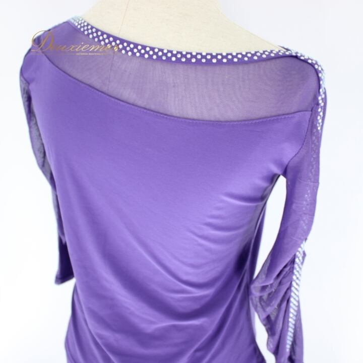 社交ダンス 衣装 スタンダード 上下セット ツーピース レッスンウェア パーティ衣装 パープル系 Leirena レイリーナ 紫 無地 ラインストーン レース パーティ スカート トップス レディース ダンスウェア 踊り衣装 おしゃれ 伸縮性 体型カバー インナー付き バイオレット発色 カジュアル フィット感 エレガント