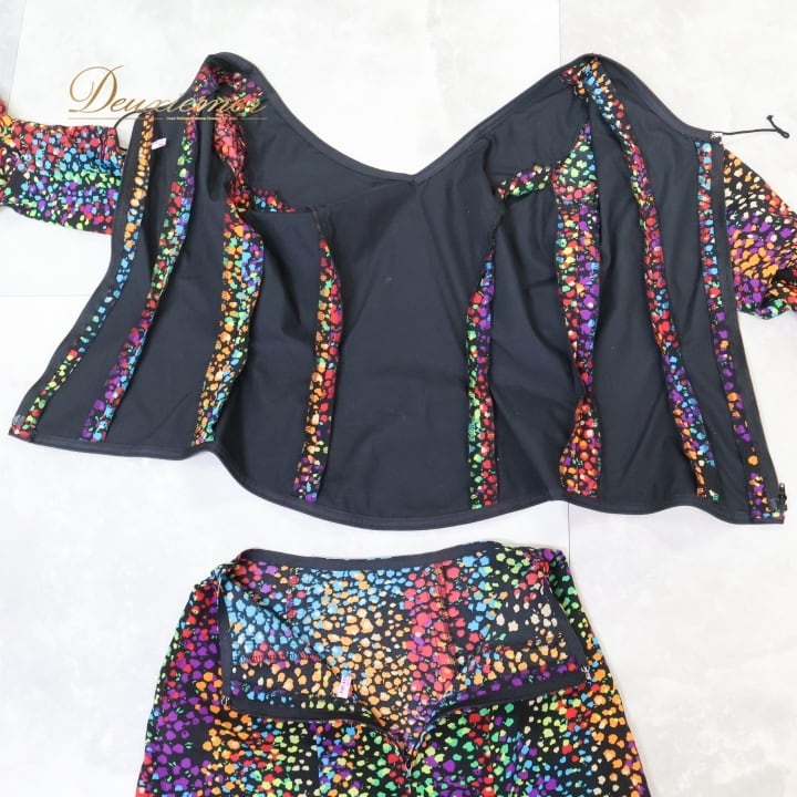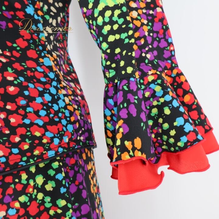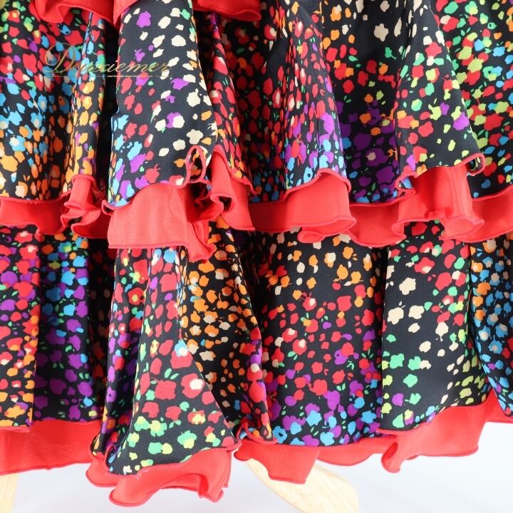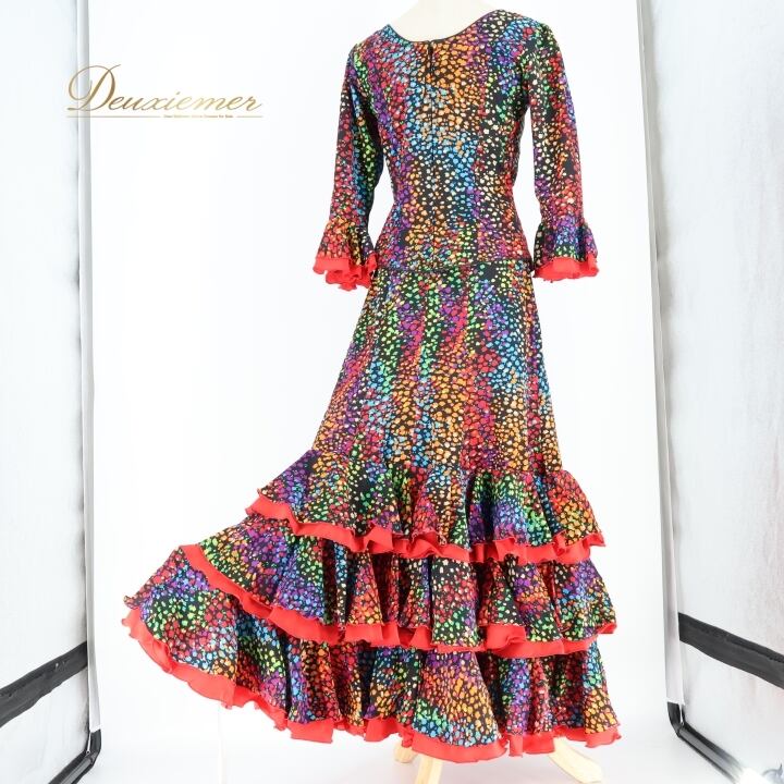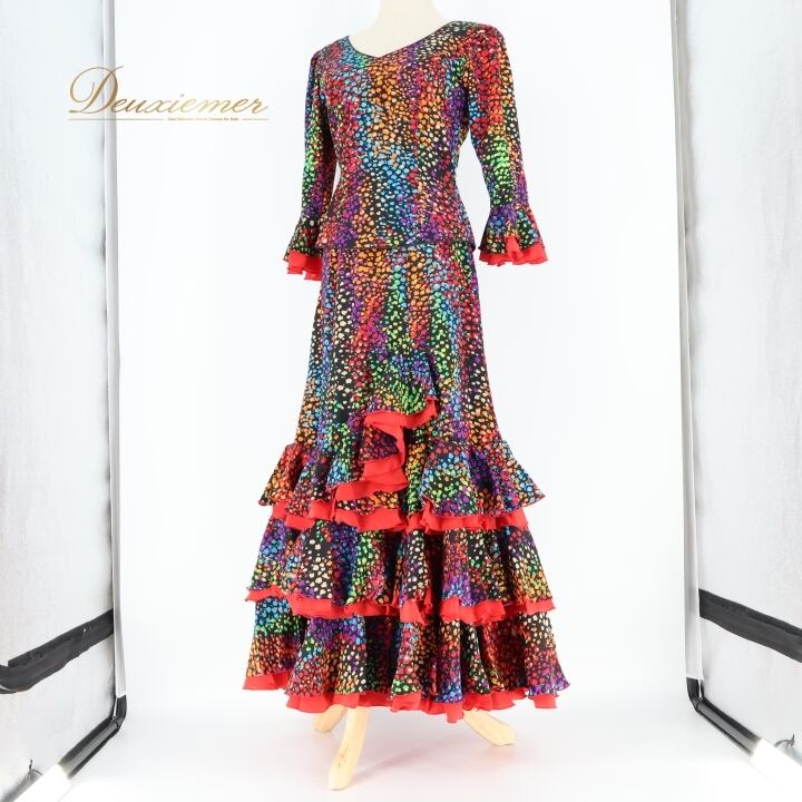 フラメンコ 衣装 エルモサイベリア HERMOSA IBERIA ツーピース セットアップ トップス ファルダ 赤 カラフル ボランテ フリル ダンス 発表会 パーティ 柄 模様 ブラック系 レッド系 ブルー系 イエロー系 かわいい おしゃれ ステージ衣装 ダンス衣装 派手 女性用 セットアップファッション 柄物 ショー衣装