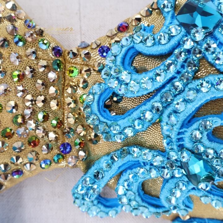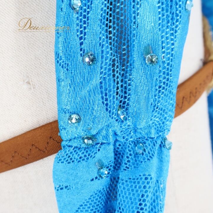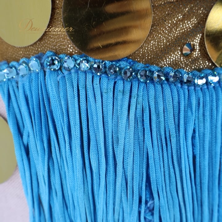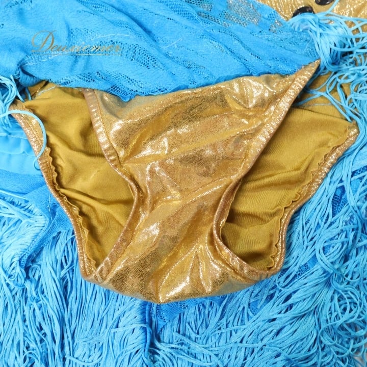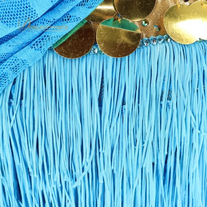 社交ダンス 衣装 ラテン ドレス ワンピース フリンジ デモ 競技 水色 金 ゴールド レース 発表会 パーティ ダンス ゴールド系 ブルー系 ステージ衣装 ダンスレッスン 豪華 目立つ フェスティバル エレガント ビジュー フリンジスカート ダンスウェア レディース 踊りやすい おしゃれ デザイン