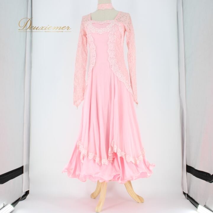 社交ダンス 衣装 スタンダード ドレス ワンピース パーティドレス レディース オールシーズン ピンク系 準正装 デモ レース 花柄 チョーカー 華やか 優雅 繊細 シック 二重スカート ボリューム おそろい チョーカー フェミニン ロマンティック 結婚式 発表会 ダンスイベント エレガント 着心地良い おしゃれ モダン フルフレア 流行 レディス 着用シーン多様
