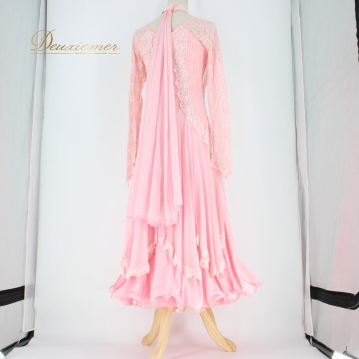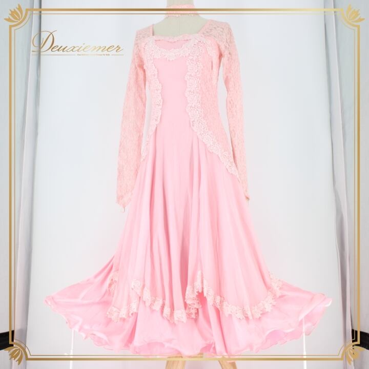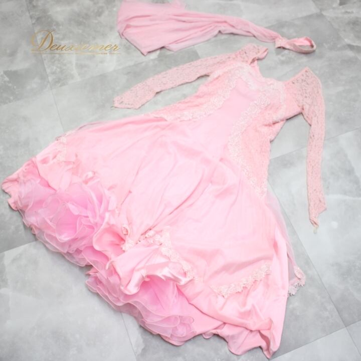#社交ダンス #ダンス衣装 #ドレス #華やか #上品 #ピンクドレス #花柄 #レース #二重スカート #優雅な動き #チョーカー #ダンサー #ファッション #スタイル #パーティー #舞台衣装 #コスチューム #ダンスパフォーマンス #ドレスアップ #ENUTSU