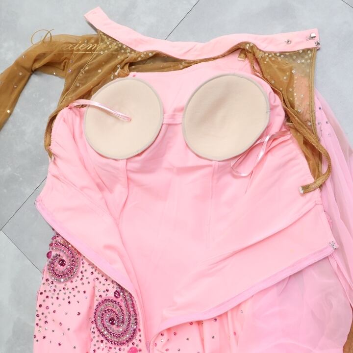 社交ダンス 衣装 スタンダードドレス ワンピース ドレス スタンダード フロート レース デモ 競技 ダンス パーティ 発表会 綺麗 かわいい 明るい 無地 ピンク系 可愛い ピンク シフォン ふんわり フロート レディース Lサイズ おしゃれ イベント 発表会用 女性服 ダンス用ドレス 競技用衣装 ステージ衣装