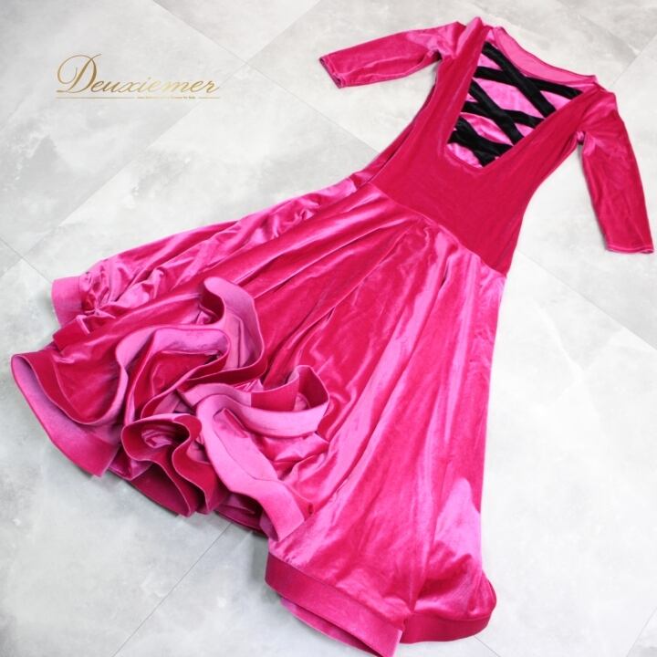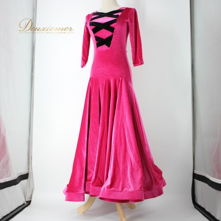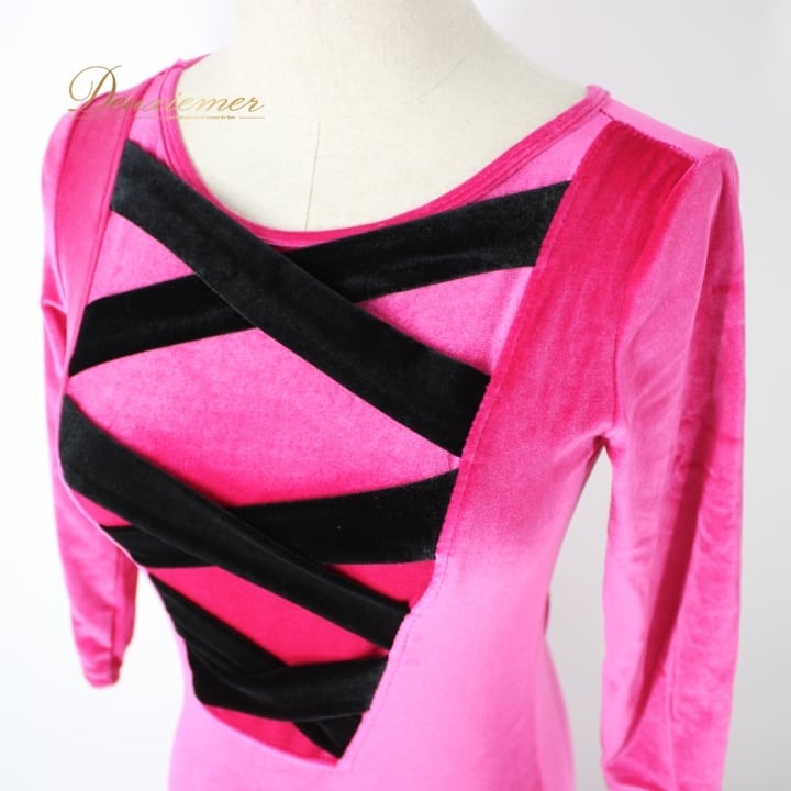 #社交ダンス #ダンス衣装 #ドレス #ビビッドピンク #ブラック #光沢感 #伸縮性 #ファスナー仕様 #女性用トルソー #ダンスファッション #レッスン用衣装 #パフォーマンス #ダンススタイル #おしゃれ #エレガント #Sサイズ #感度高い #ダンスイベント #YILINFEIER #ENUTSU