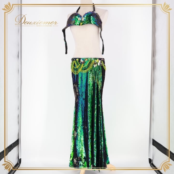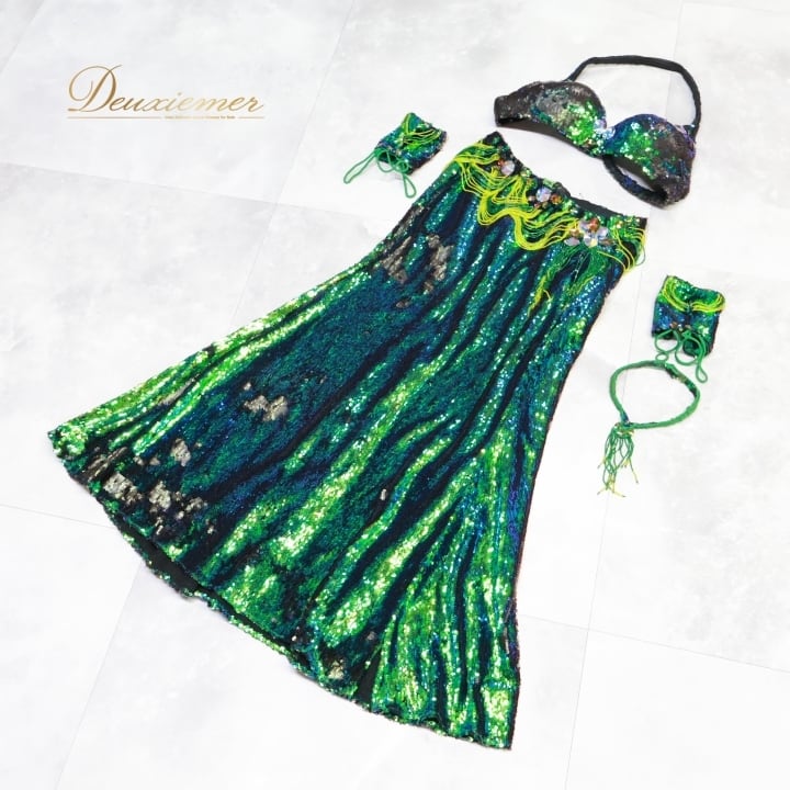 #ベリーダンス #オリエンタル衣装 #ダンス衣装 #スパンコール #ベラ #グリーン #チョーカー #舞台衣装 #ダンスコスチューム #スリットスカート #エレガント #ダンスプレイ #ファッション #トルソー #女性用 #ダンス好き #コスプレ #衣装撮影 #ダンススタイル #ENUTSU