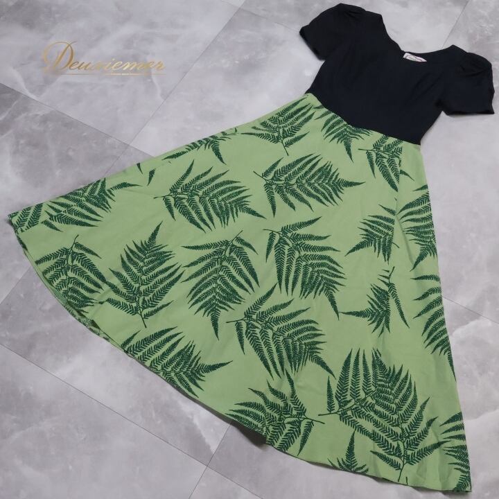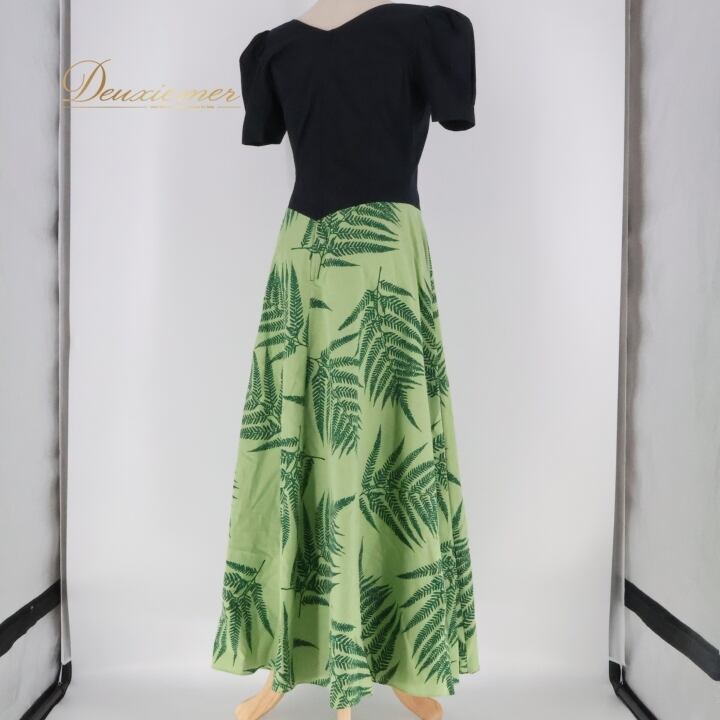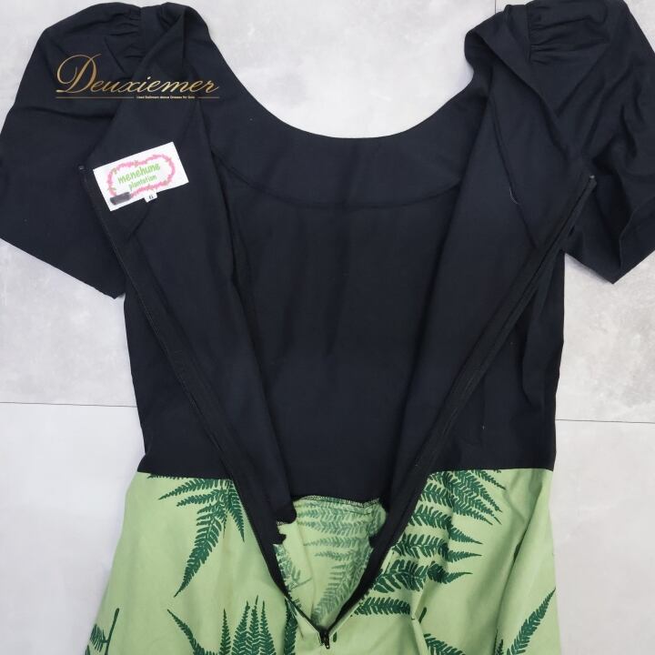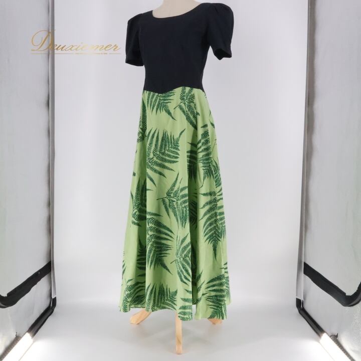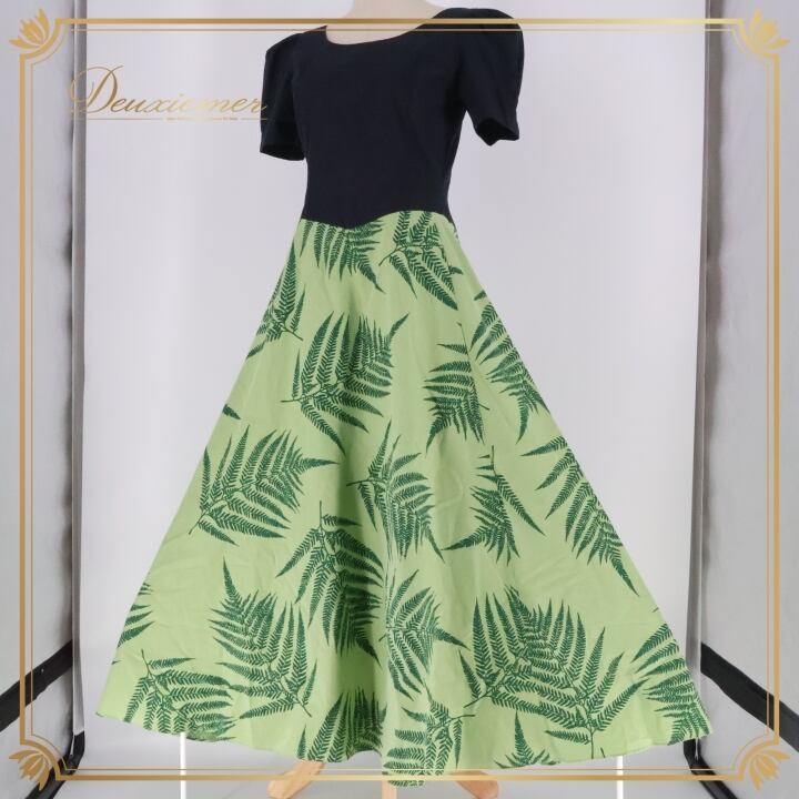 フラダンス 衣装 ワンピース ドレス メネフネプランテーション ブラック系 グリーン系 MENEHUNE PLANTETION 日本製 パフスリーブ シンプル かわいい 華やか 鮮やか 黒 緑 ハワイアン アロハ ハワイアンプリント フラ ダンス レッスン